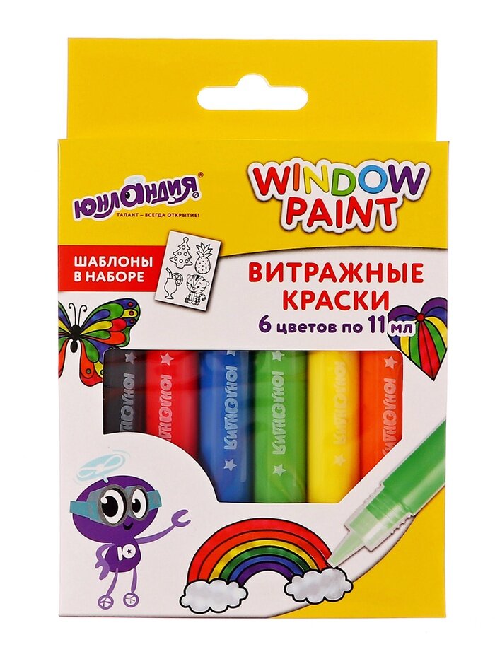 Краска по стеклу витражная Аппликация набор 6цв*105-11мл юнландия шаблоны, 191758 интересное:
