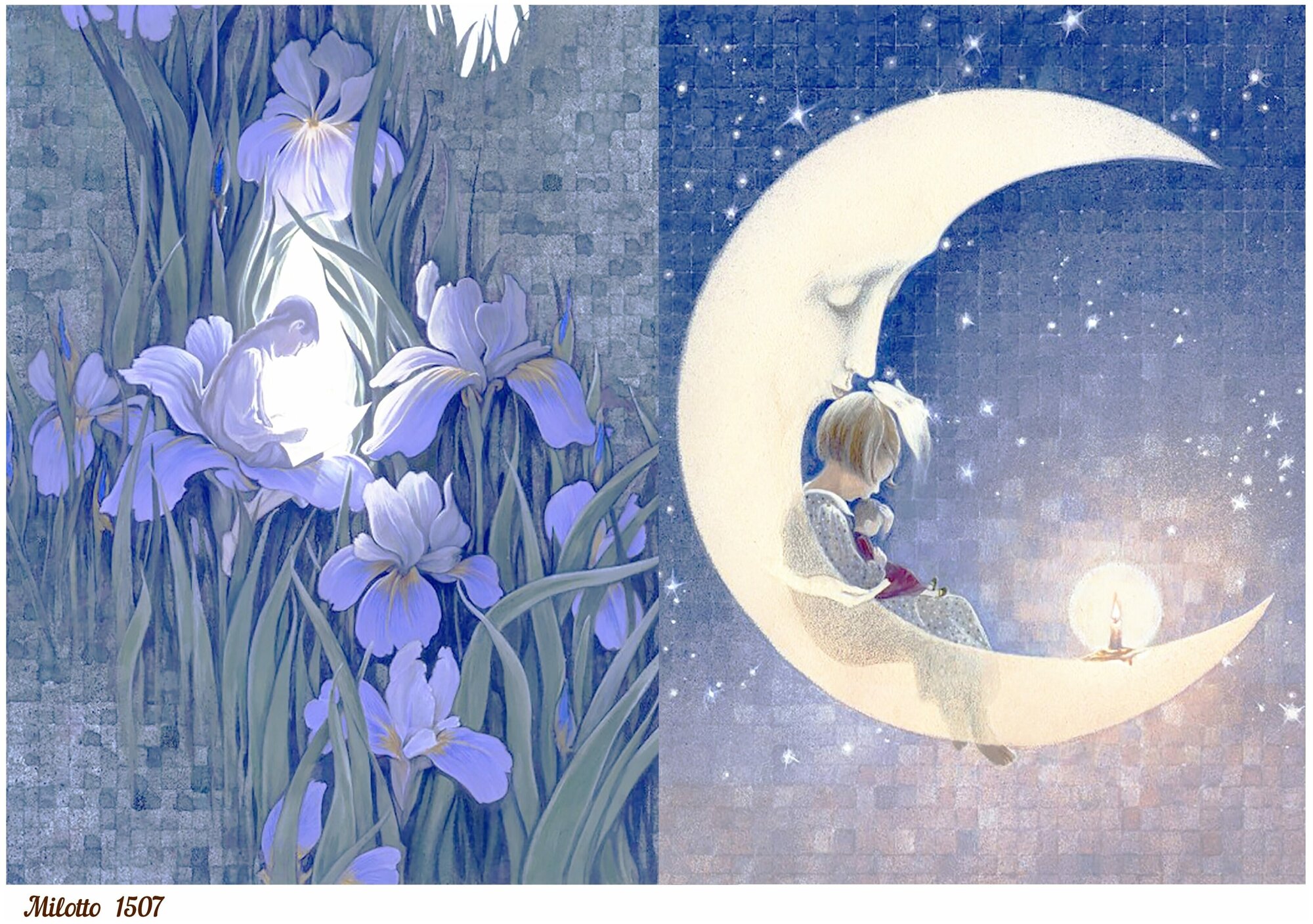 Купить Рисовая бумага для декупажа карта салфетка А4 1507 луна цветы ночное небо винтаж крафт Milotto