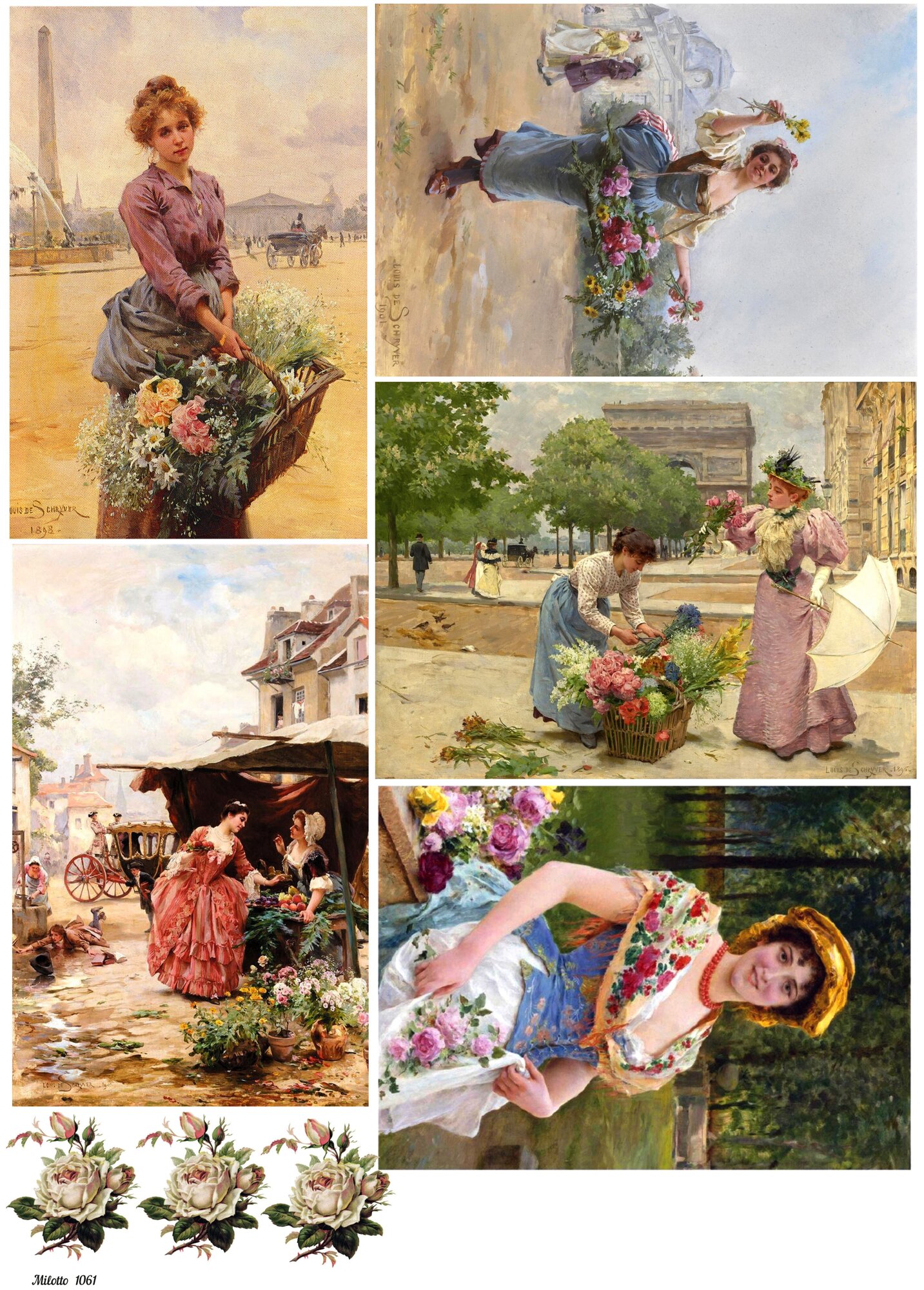 Купить Декупажная карта А4 рисовая бумага тонкая ретро дама с цветами