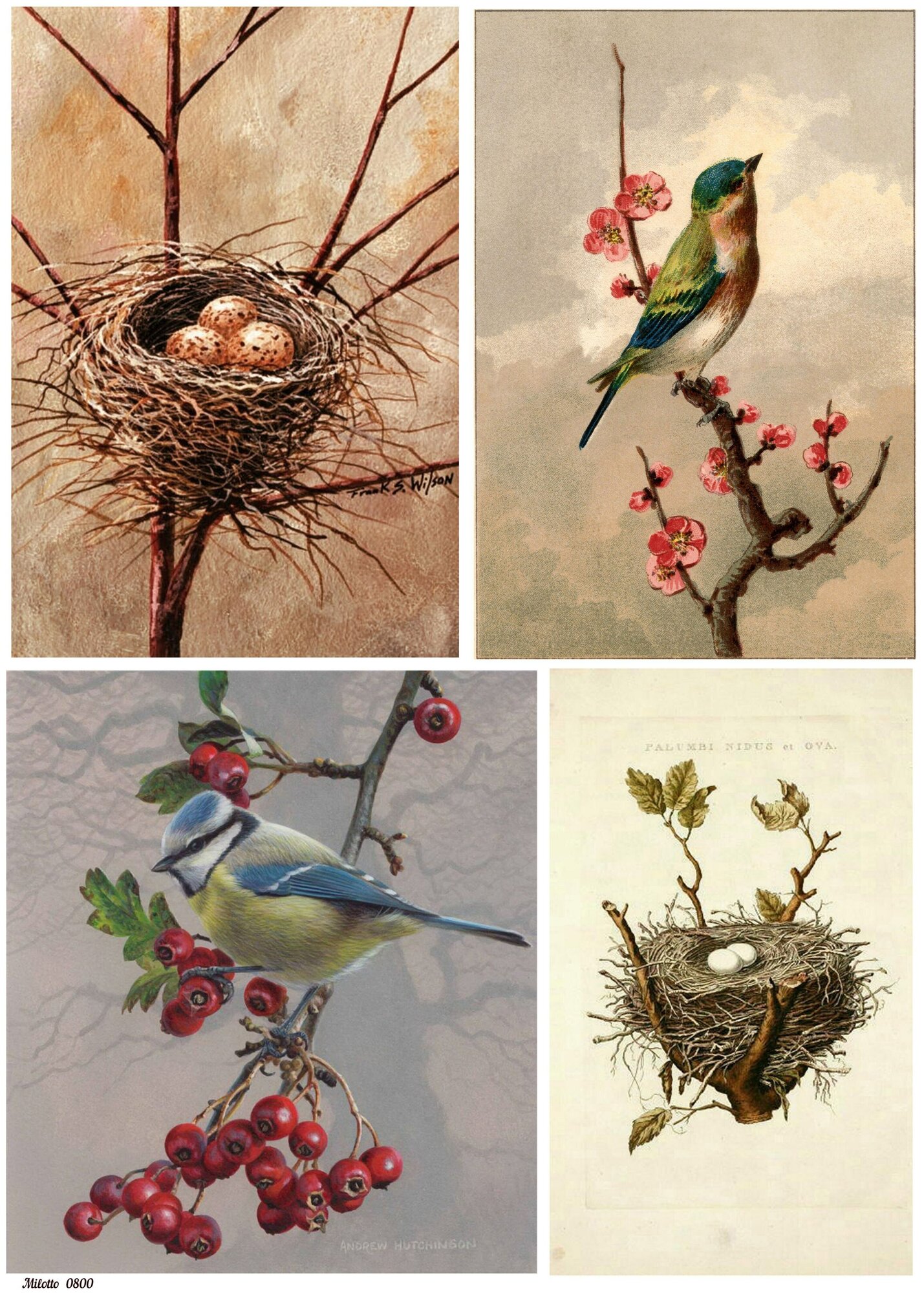 Рисовая бумага для декупажа А4 ультратонкая салфетка 0800 птица гнездо насест ветка винтаж крафт Milotto интересное: