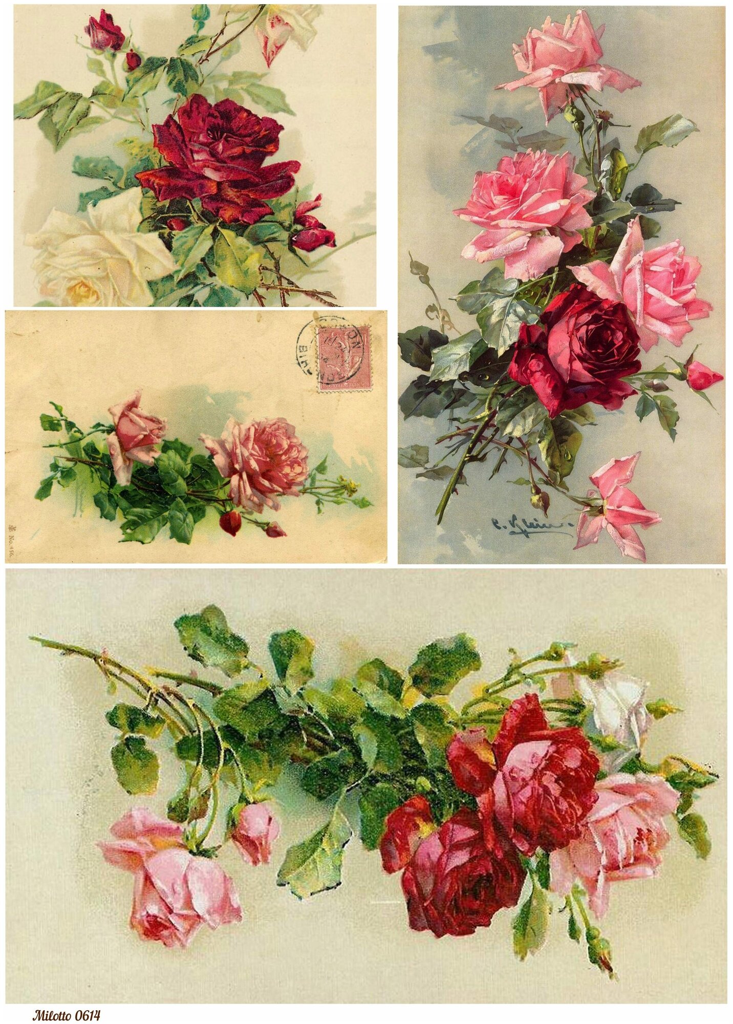 Купить Рисовая бумага для декупажа А4 ультратонкая салфетка 0614 розы цветы винтаж крафт Milotto