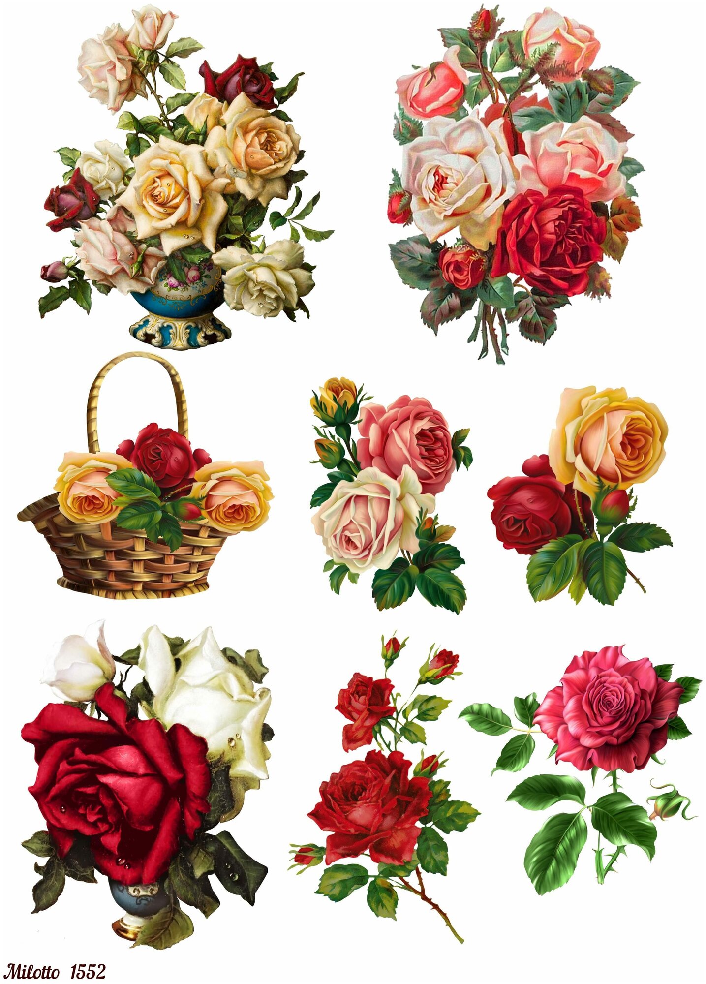 Купить Декупажная рисовая карта бумага А4 салфетка 1552 цветы розы винтаж крафт Milotto