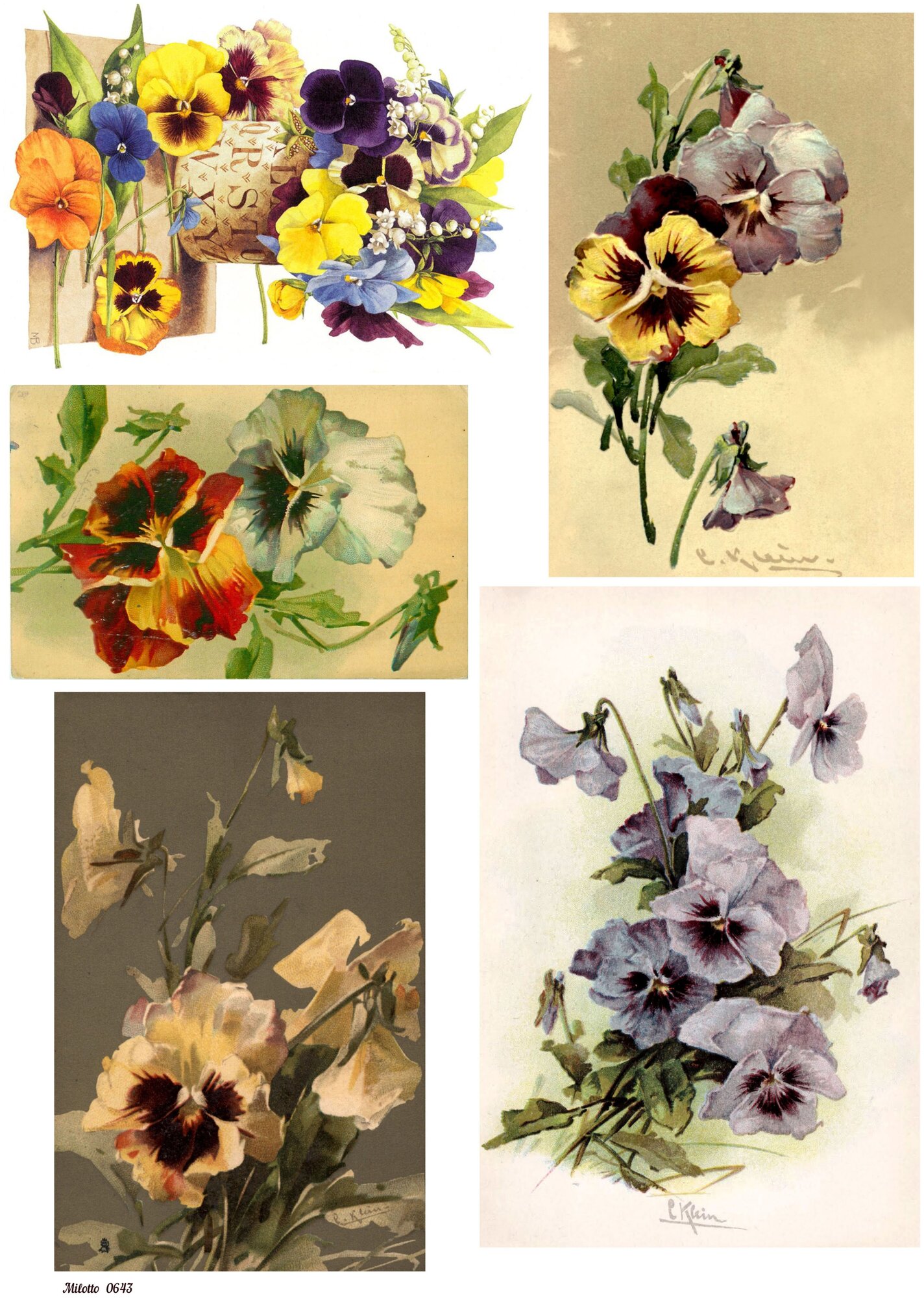 Купить Рисовая бумага для декупажа А4 ультратонкая салфетка 0643 цветы фиалки винтаж крафт Milotto