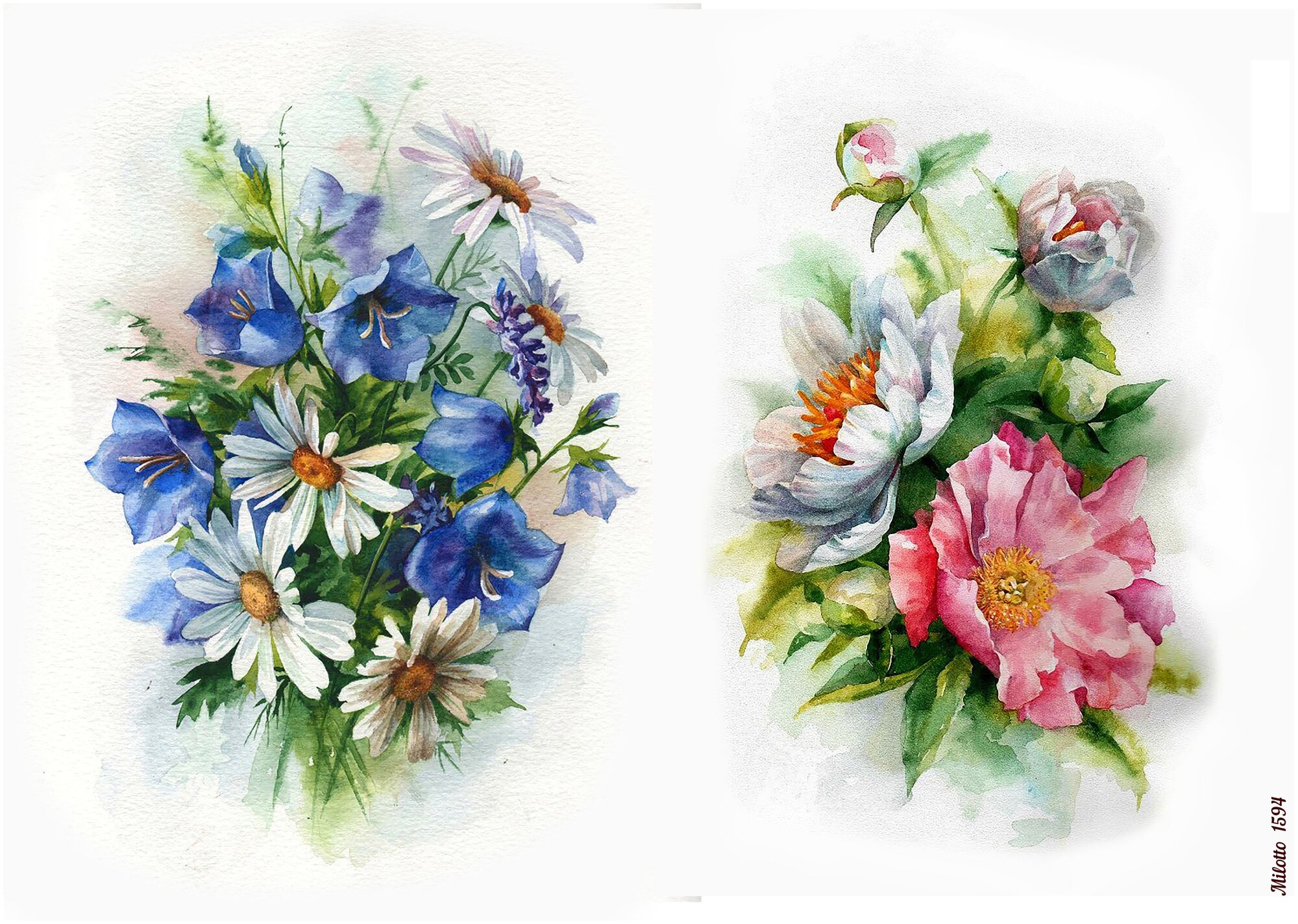 Купить Рисовая бумага для декупажа А4 ультратонкая салфетка 1594 цветы винтаж крафт Milotto