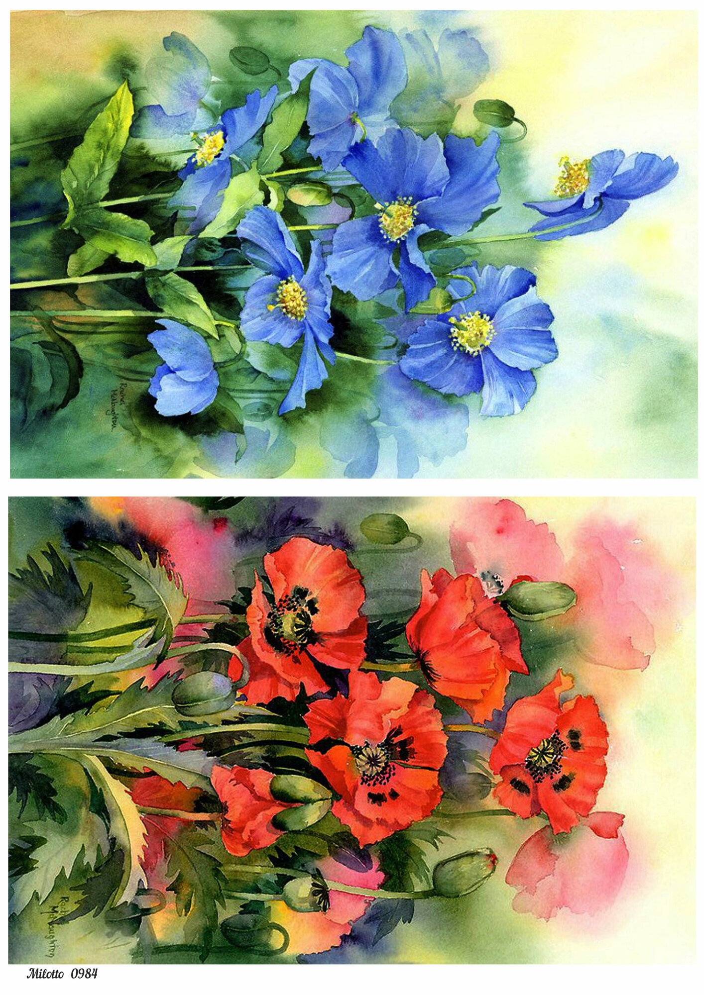 Купить Декупажная карта А4 рисовая салфетка 0984 цветы мак винтаж крафт DIY Milotto