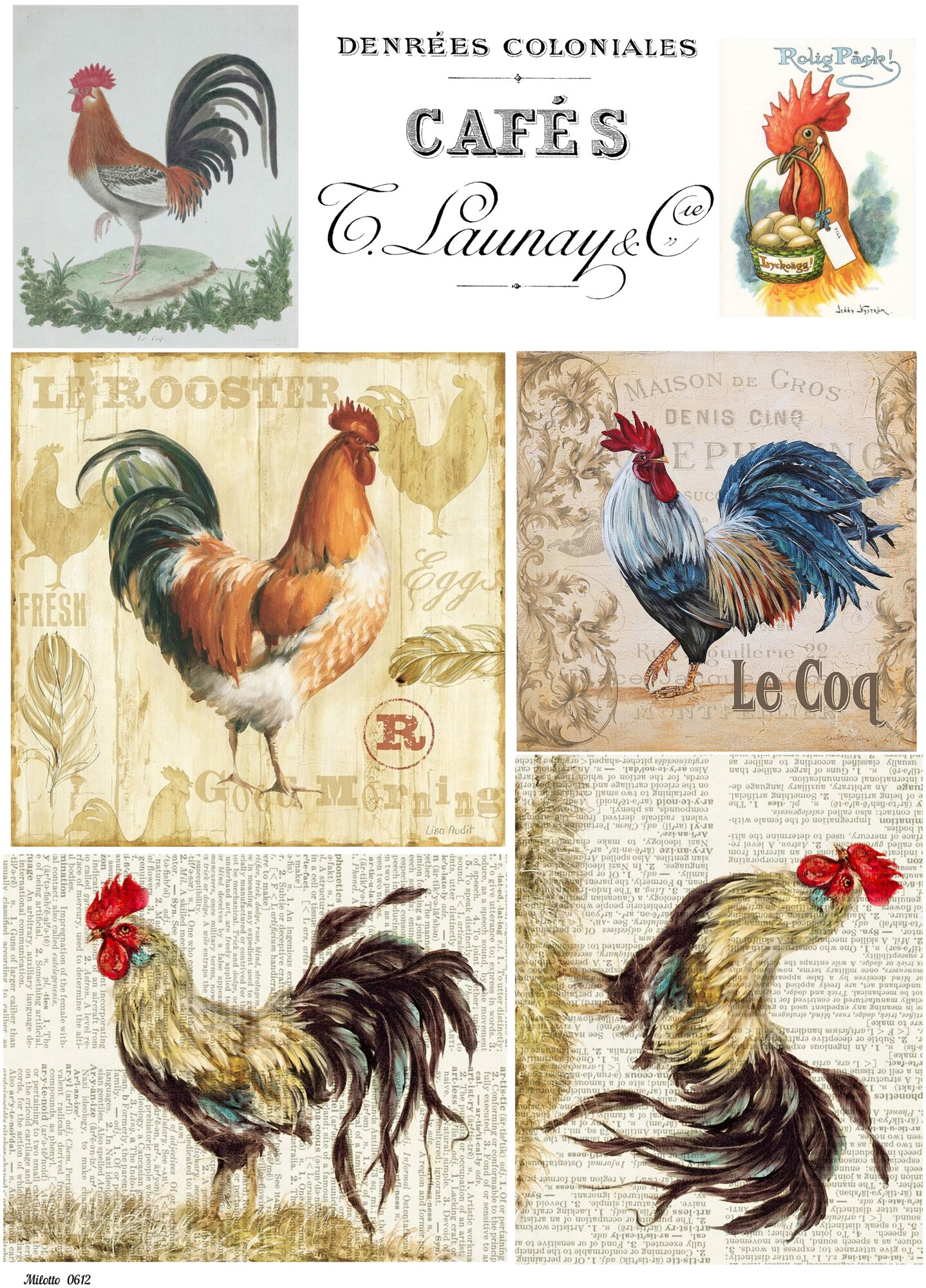 Купить Рисовая бумага для декупажа А4 ультратонкая салфетка 0612 петухи винтаж крафт Milotto