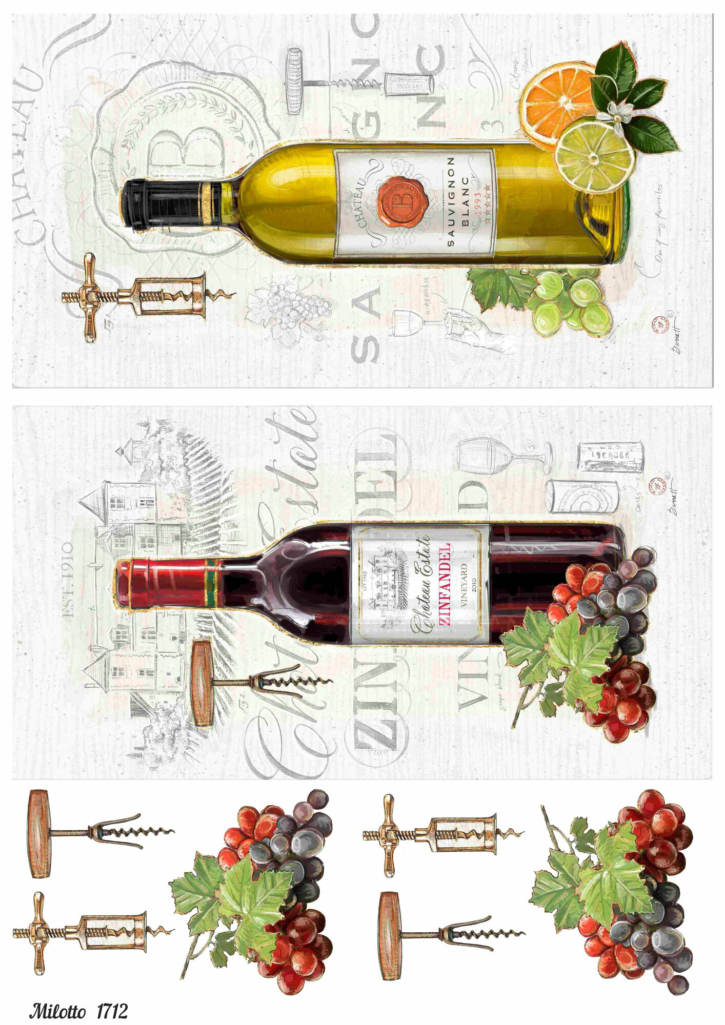 Купить Рисовая бумага для декупажа карта А4 салфетка 1712 вино виноград бутылка винтаж крафт DIY Milotto