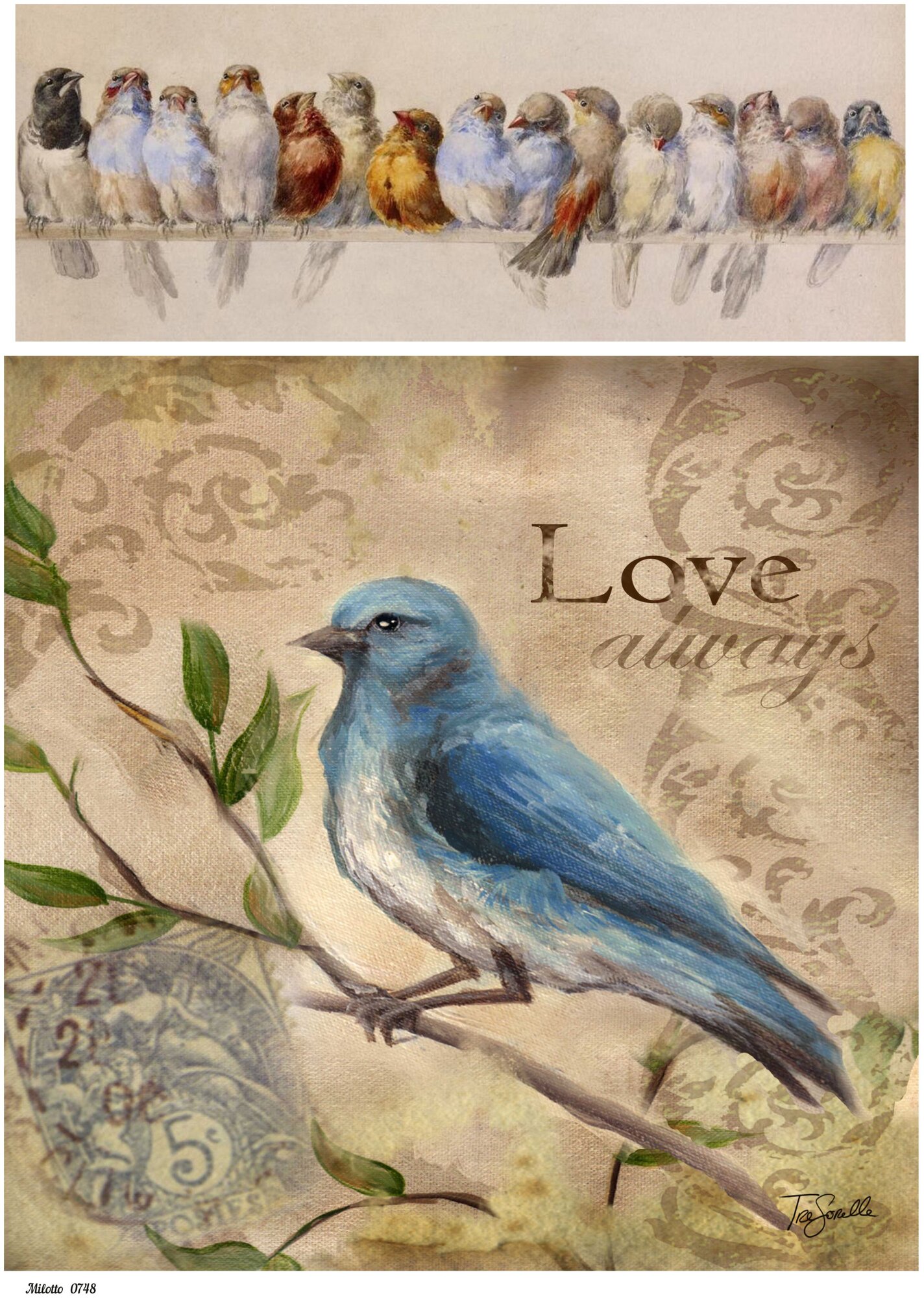 Купить Декупажная рисовая карта А4 ультратонкая бумага салфетка 0748 птицы цветы винтаж крафт Milotto