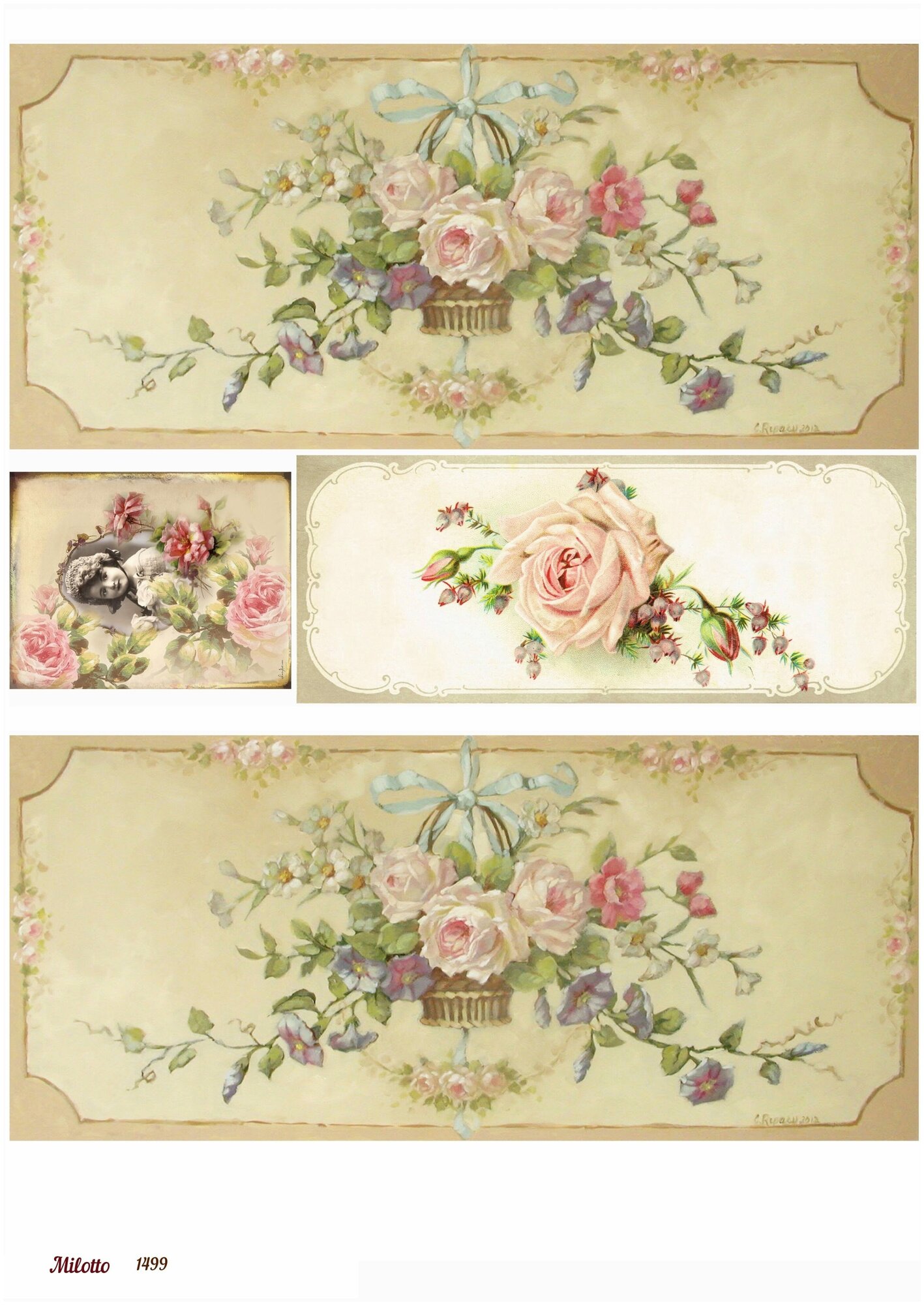 Купить Рисовая бумага для декупажа А4 ультратонкая салфетка 1499 розы цветы винтаж крафт Milotto