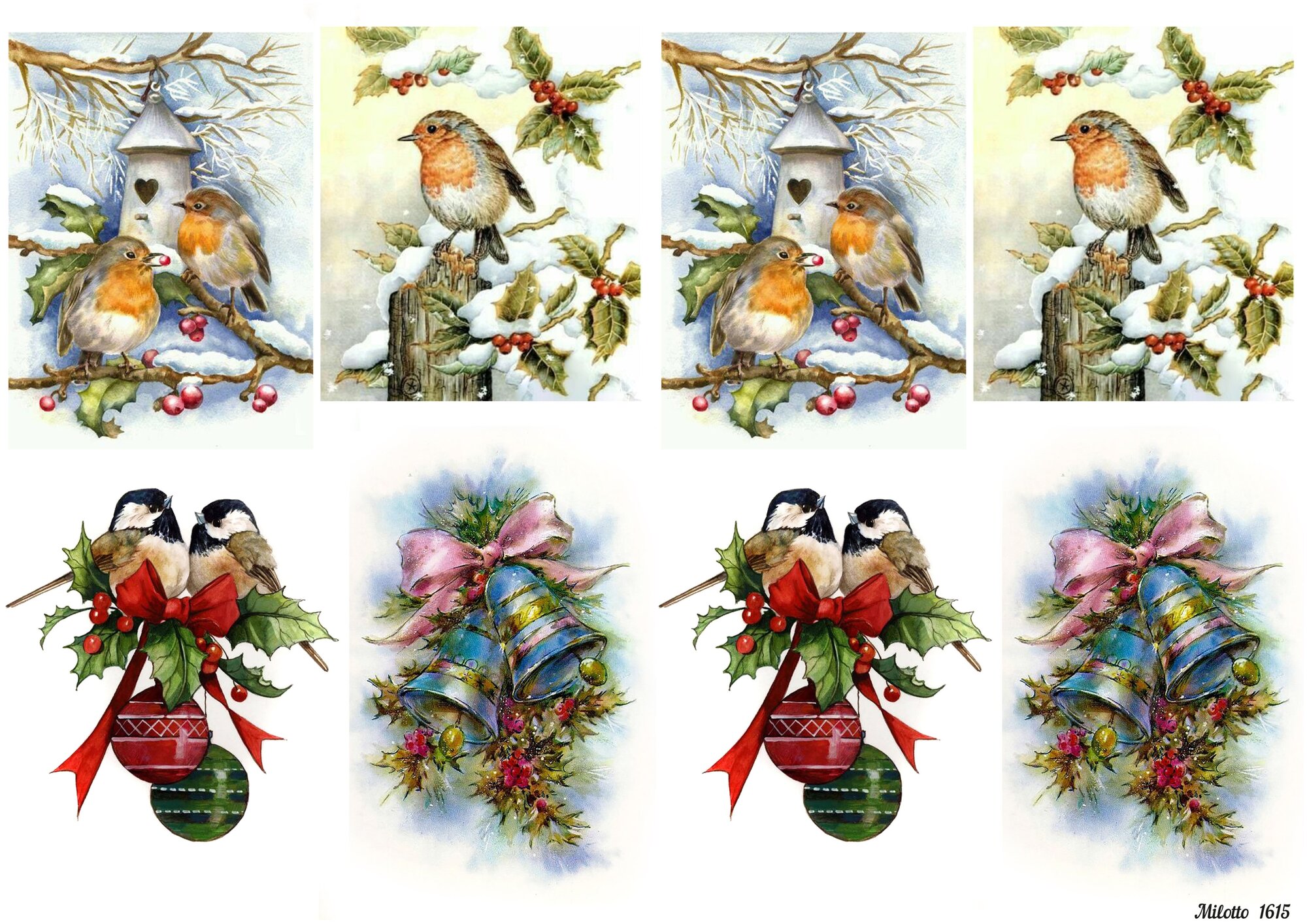 Рисовая бумага для декупажа А4 ультратонкая салфетка 1615 Новый Год птицы ёлочные шары колокольчики зима винтаж крафт Milotto интересное: