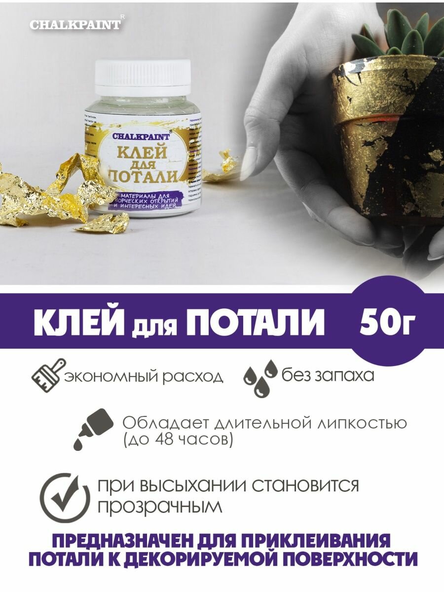 Клей Chalky Paint акриловый для потали, на водной основе, пластиковая банка, 50 г интересное: