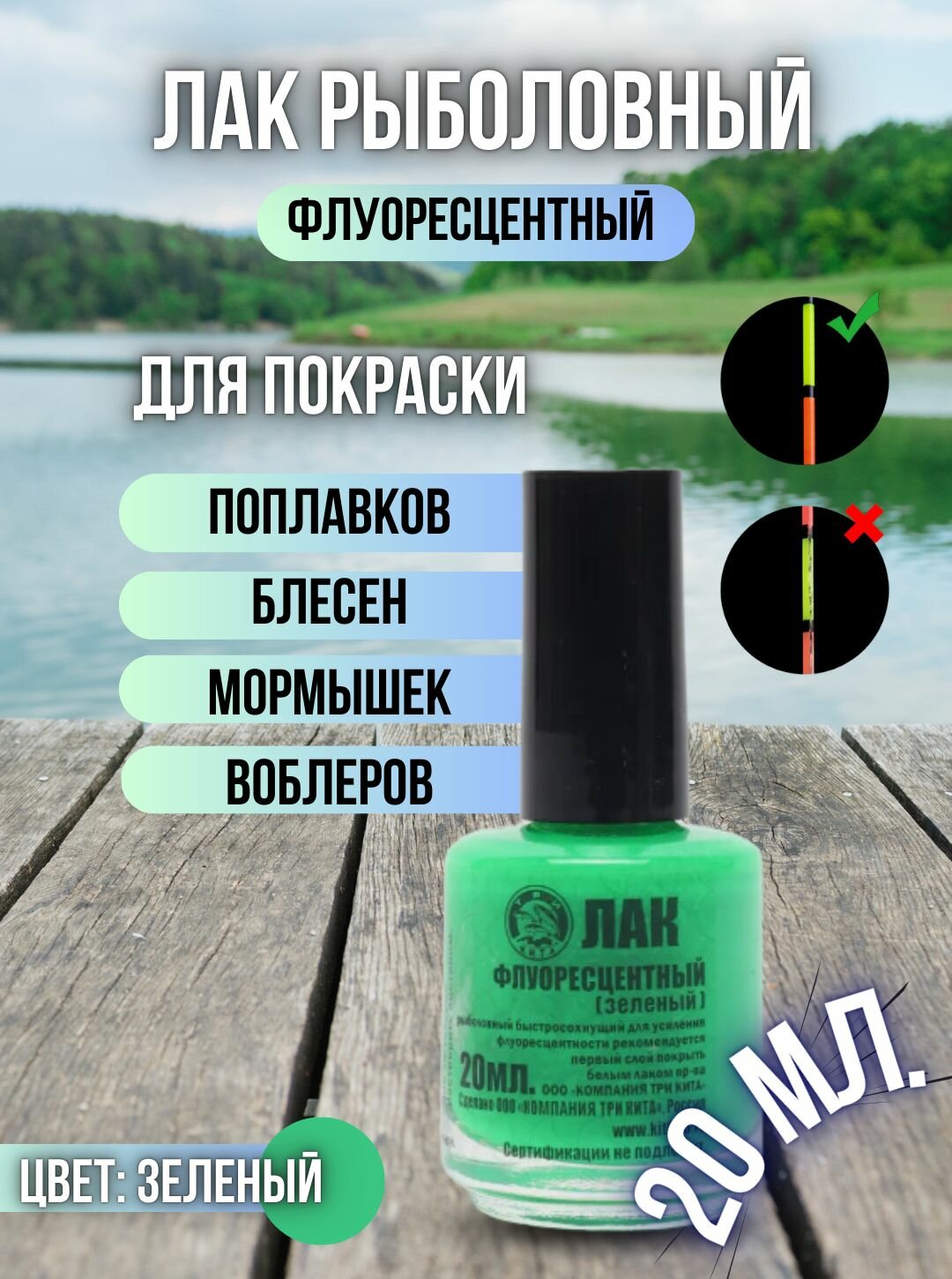Лак рыболовный флуоресцентный быстросохнущий / Лак для приманок и поплавков зеленый интересное: