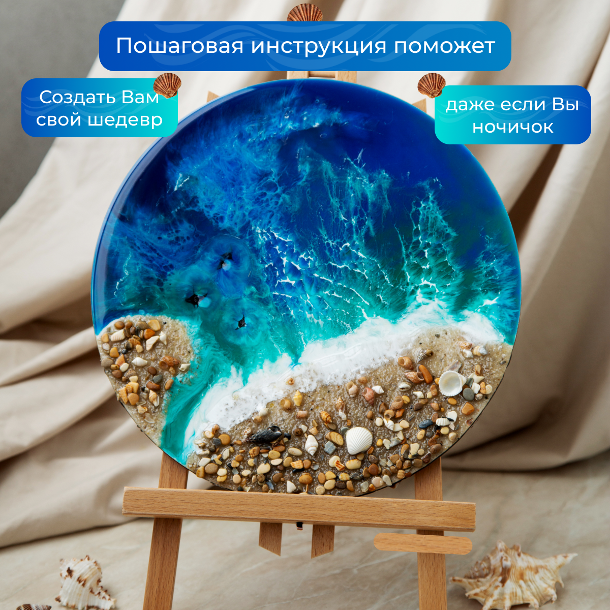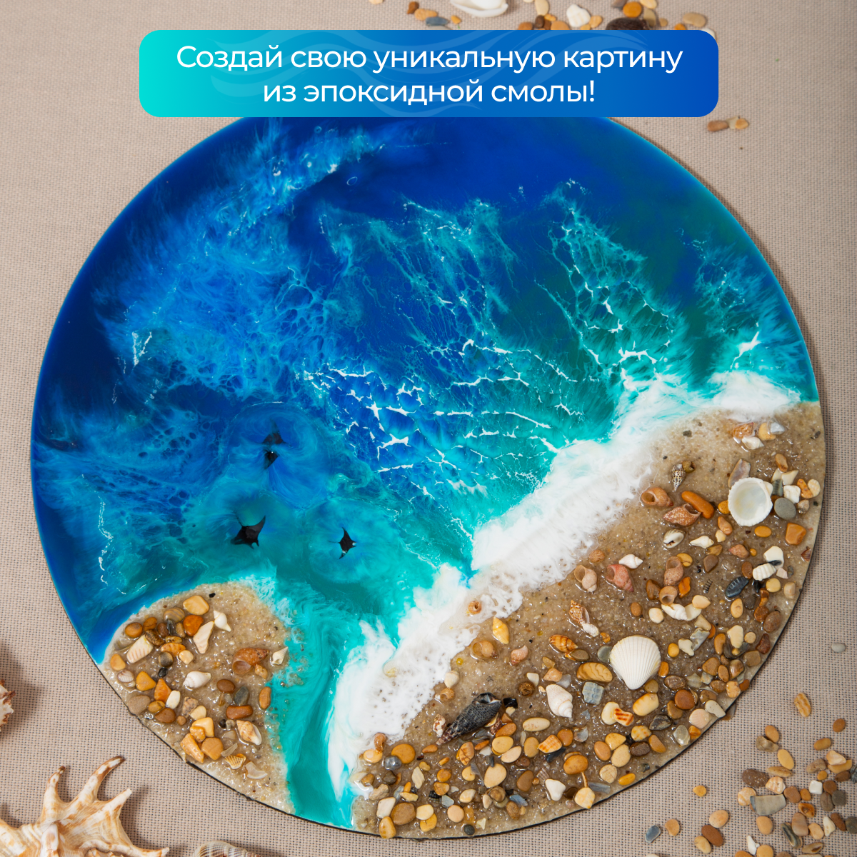 Творческий набор для рисования эпоксидной смолой в технике Resin Art "Море" интересное: