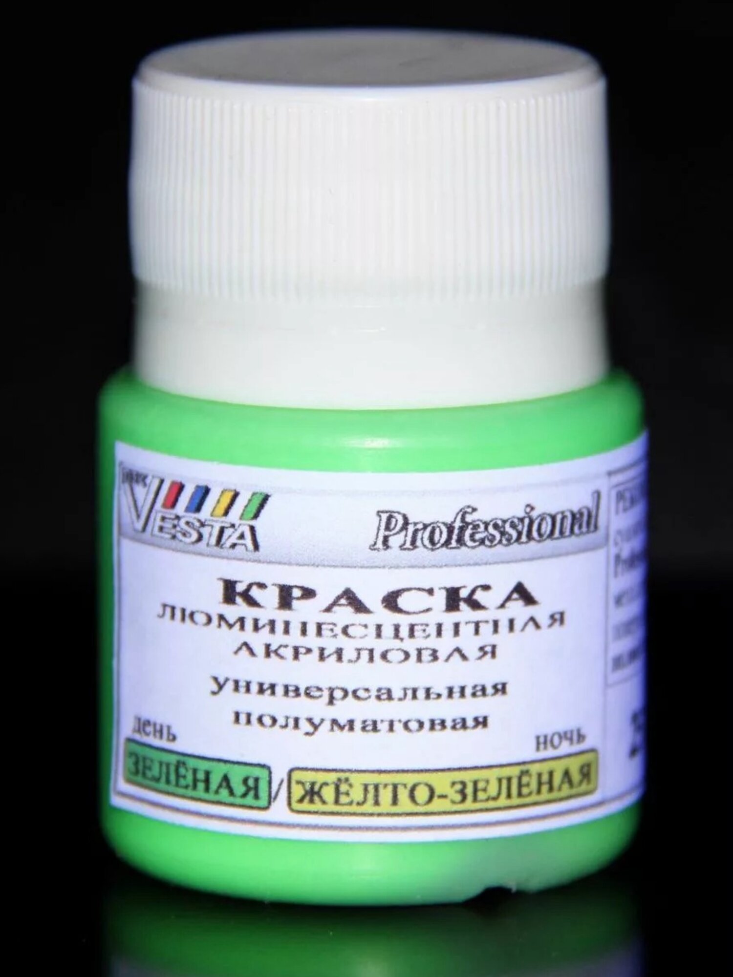 Купить Краска люминесцентная "VESTA PROFESSIONAL" зеленая / желто-зеленая (день / ночь) - 100 мл