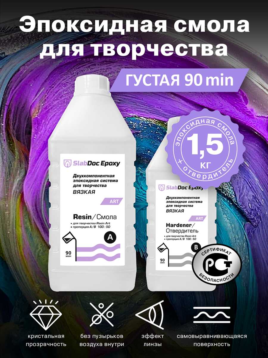 Эпоксидная смола для творчества SlabDoc Epoxy Art вязкая 90 минут, 1.5 кг, прозрачная интересное: