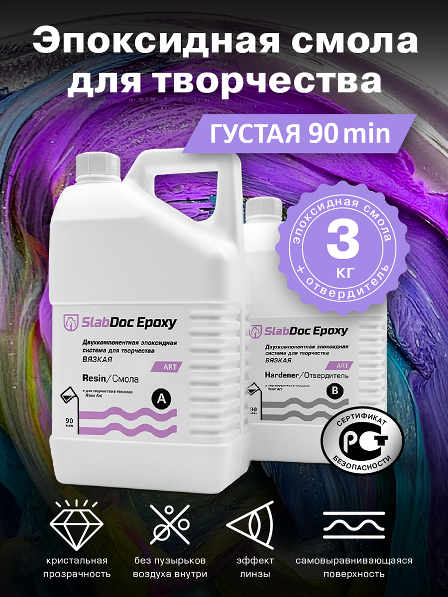 Купить Эпоксидная смола для творчества SlabDoc Epoxy Art вязкая 90 минут, 3 кг, прозрачная