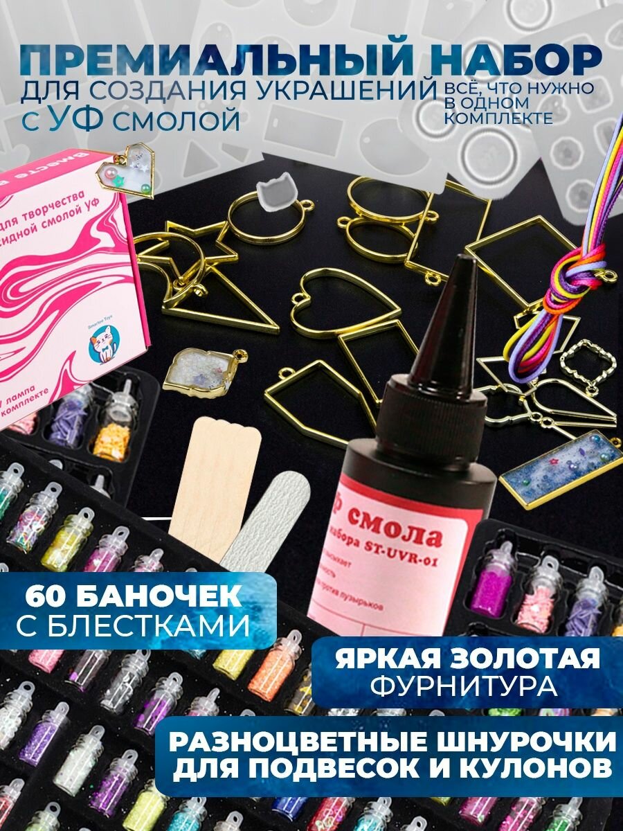 Премиум набор для творчества с УФ смолой - Подвески, сережки, кольца, кулоны - Smartee Toy интересное: