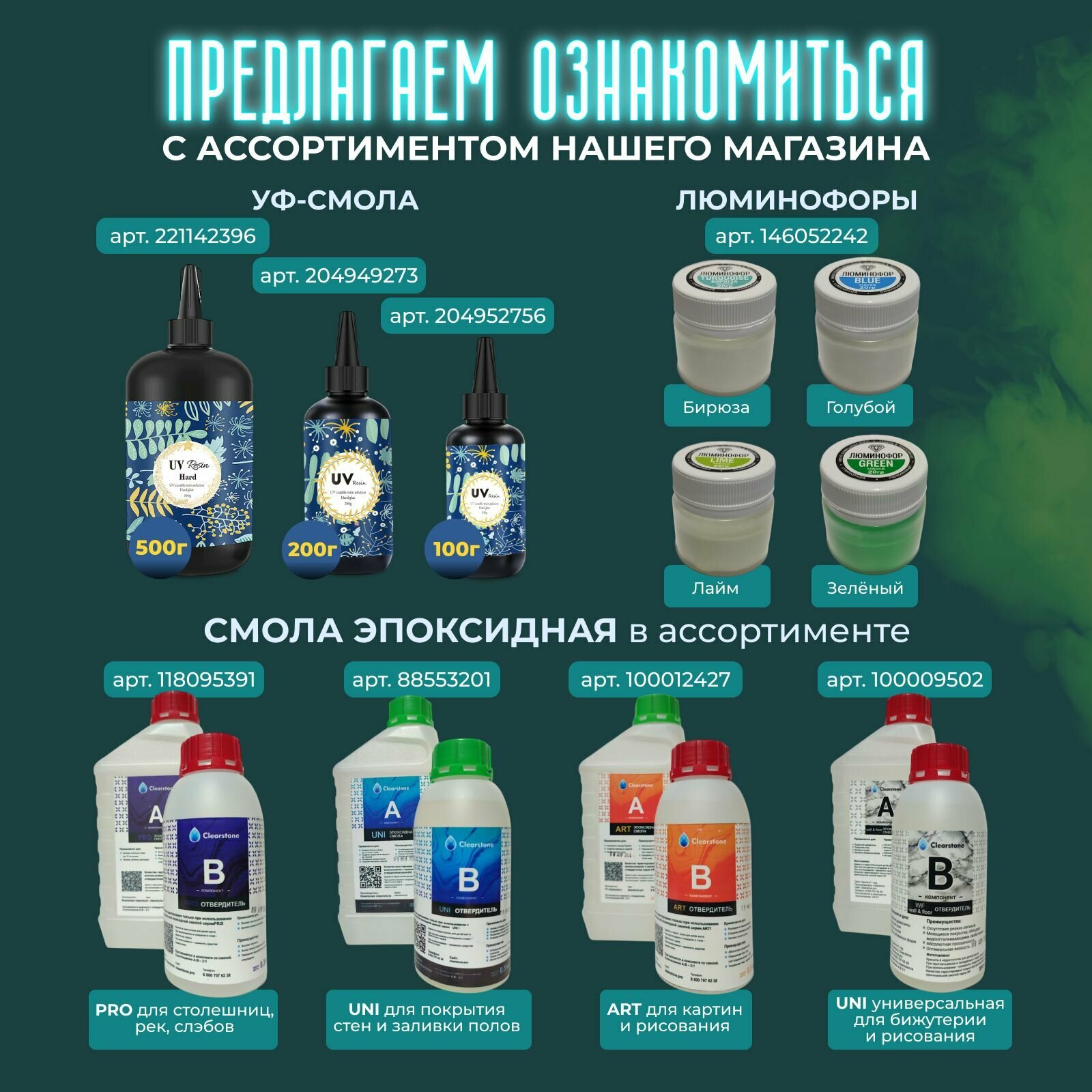 Ниже Вы можете прочитать отзывы на Набор красителей (порошков) люминофоров 3шт*20гр, (цвета Лайм, Бирюзовый, Голубой), для эпоксидной смолы и лаков, ознакомится с подробными характеристиками, посмотреть интересные обзоры и фотографии на Набор красителей (порошков) люминофоров 3шт*20гр, (цвета Лайм, Бирюзовый, Голубой), для эпоксидной смолы и лаков.