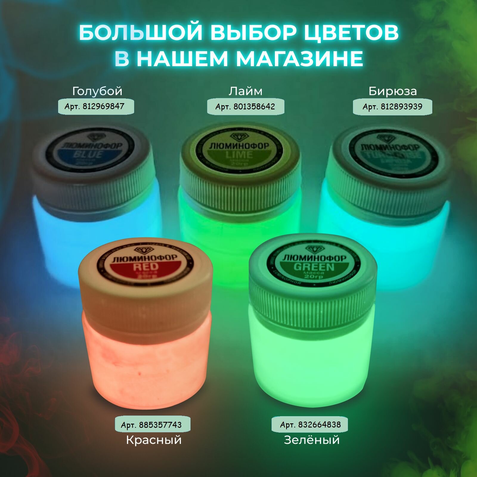 Набор красителей (порошков) люминофоров 3шт*20гр, (цвета Лайм, Бирюзовый, Голубой), для эпоксидной смолы и лаков интересное: