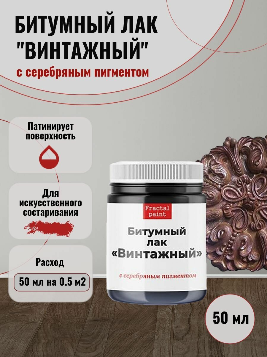 Битумный лак "Винтажный" с серебряным пигментом (50 мл), Fractal Paint интересное: