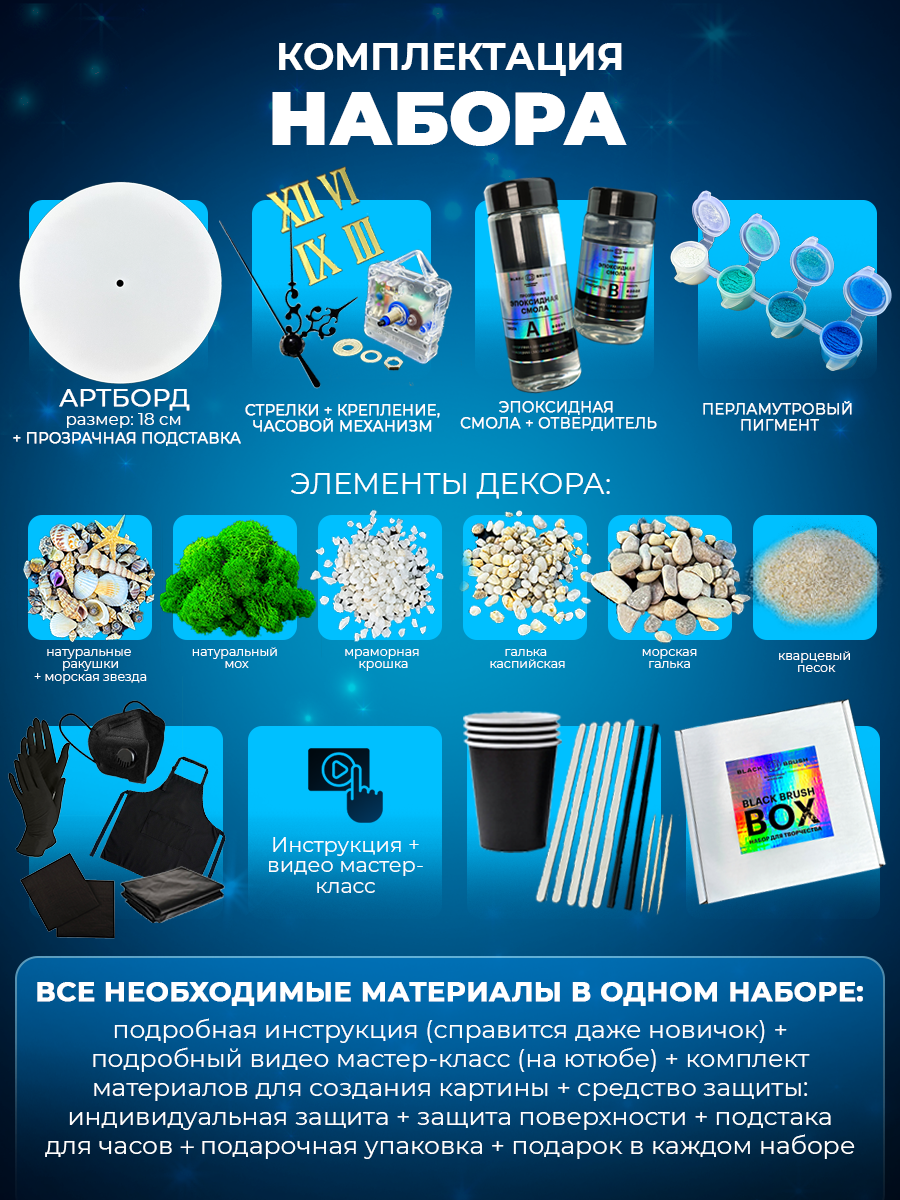 Ниже Вы можете прочитать отзывы на Набор для творчества BLACK BRUSH "Часы", эпоксидная смола, для декорирования, ознакомится с подробными характеристиками, посмотреть интересные обзоры и фотографии на Набор для творчества BLACK BRUSH "Часы", эпоксидная смола, для декорирования.