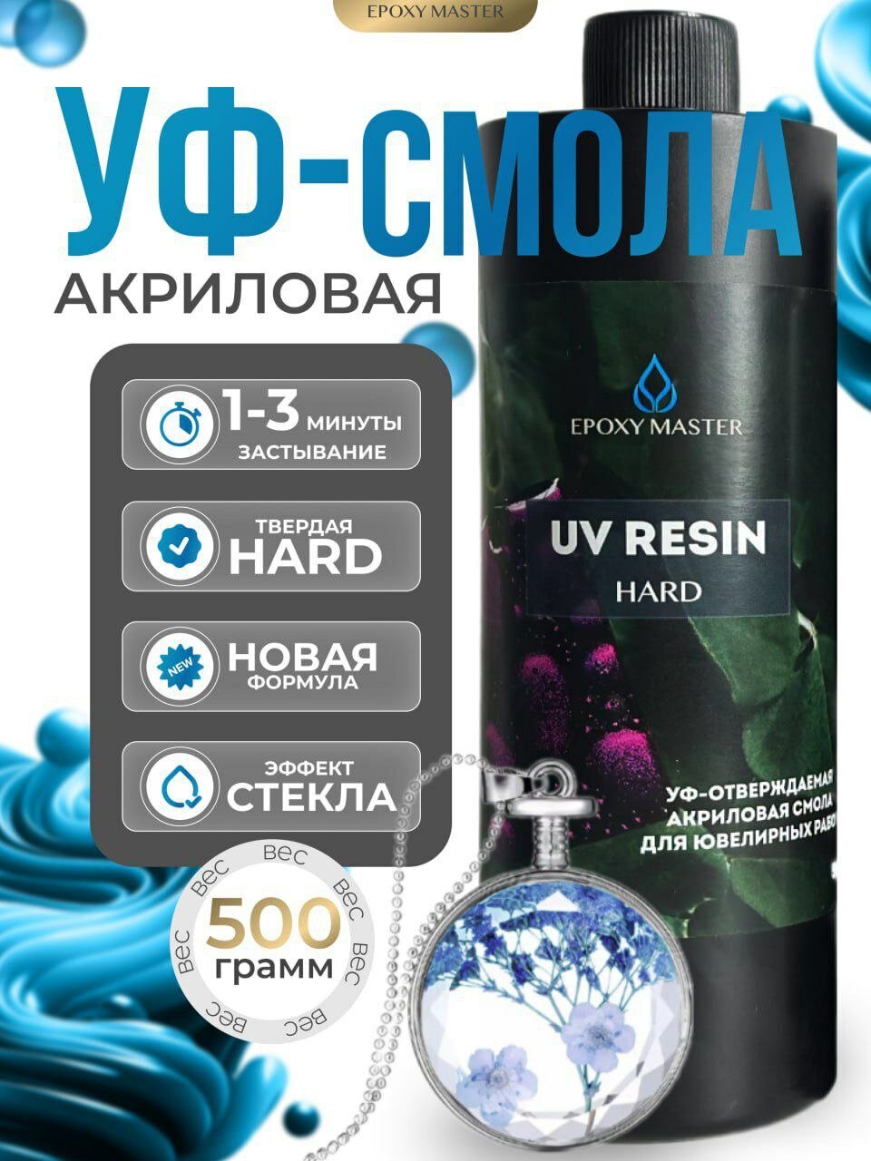 УФ-отверждаемая акриловая смола твердая Epoxymaster - Hard, 500г интересное: