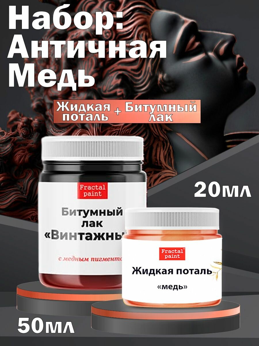 Набор "Античная Медь" (жид. поталь медь 20 мл + битум. лак с медн. пигм. 50 мл) интересное: