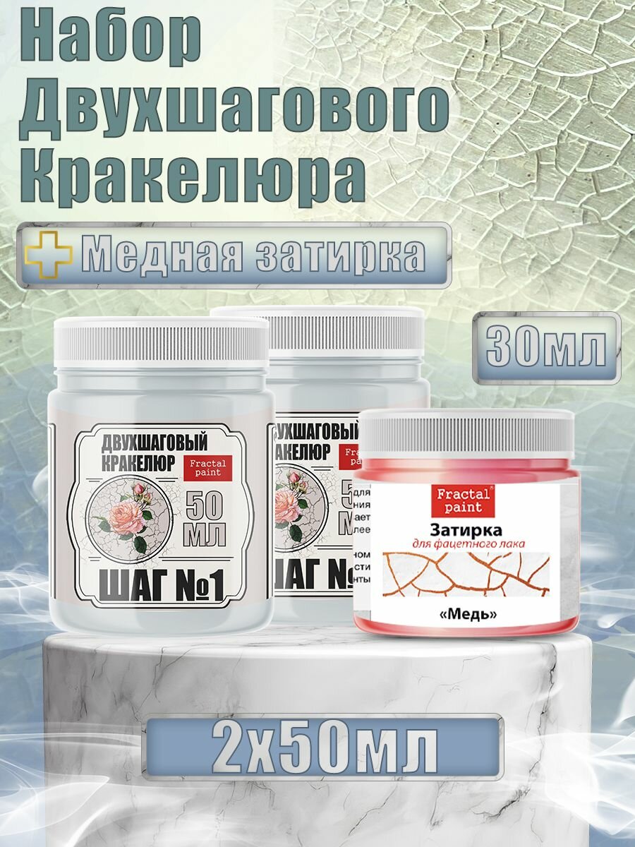 Купить Набор двухшагового кракелюра 50 мл (+затирка "Медь" 30 мл), Fractal Paint