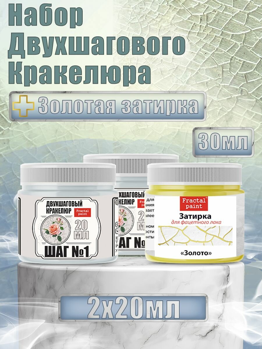 Набор двухшагового кракелюра 20 мл (+затирка "Белая" 30 мл), Fractal Paint