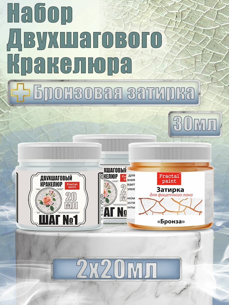 Набор двухшагового кракелюра 20 мл (+затирка "Белая" 30 мл), Fractal Paint