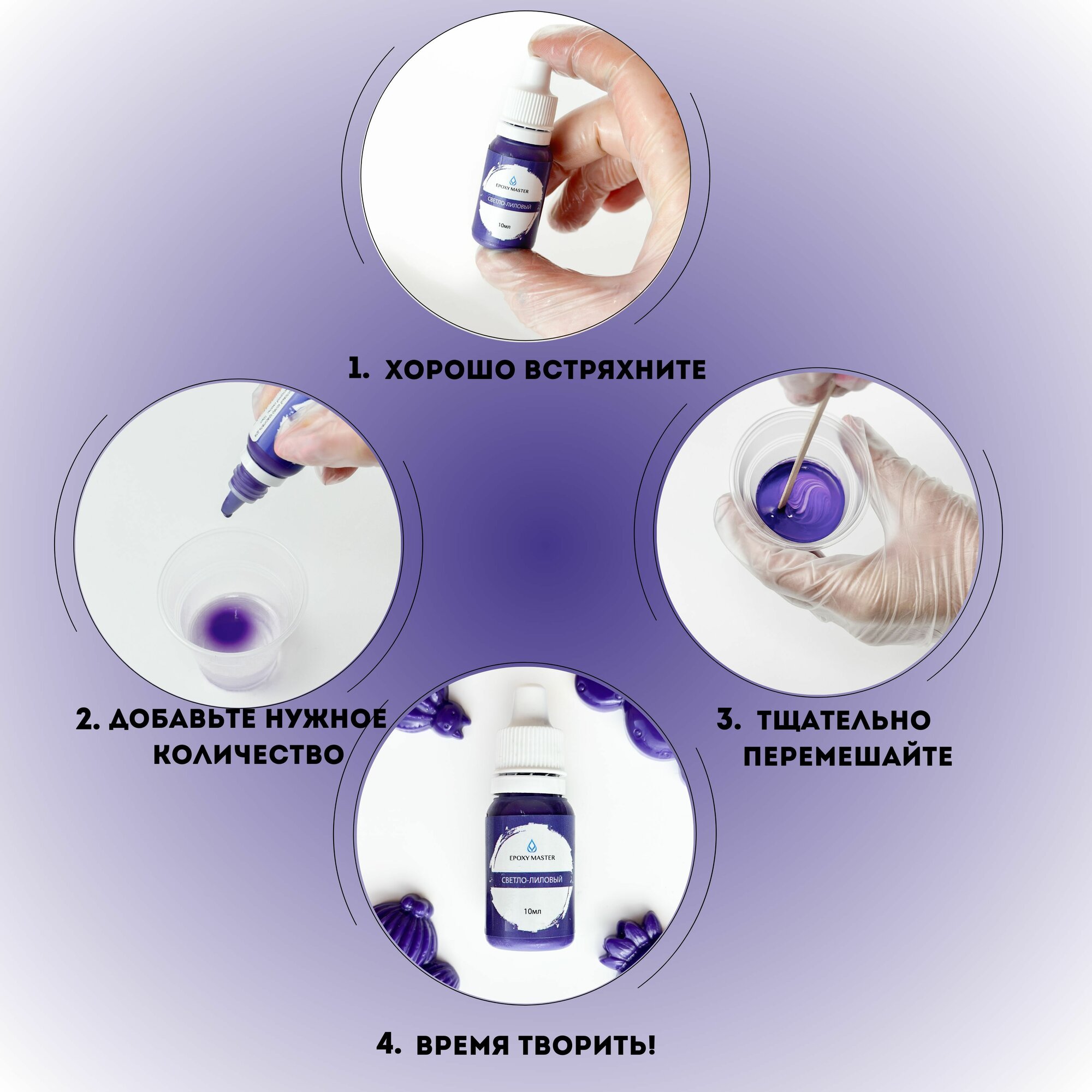 СохранитьСветло-лиловый колер/краситель для эпоксидной смолы EPOXYMASTER, 10мл интересное: