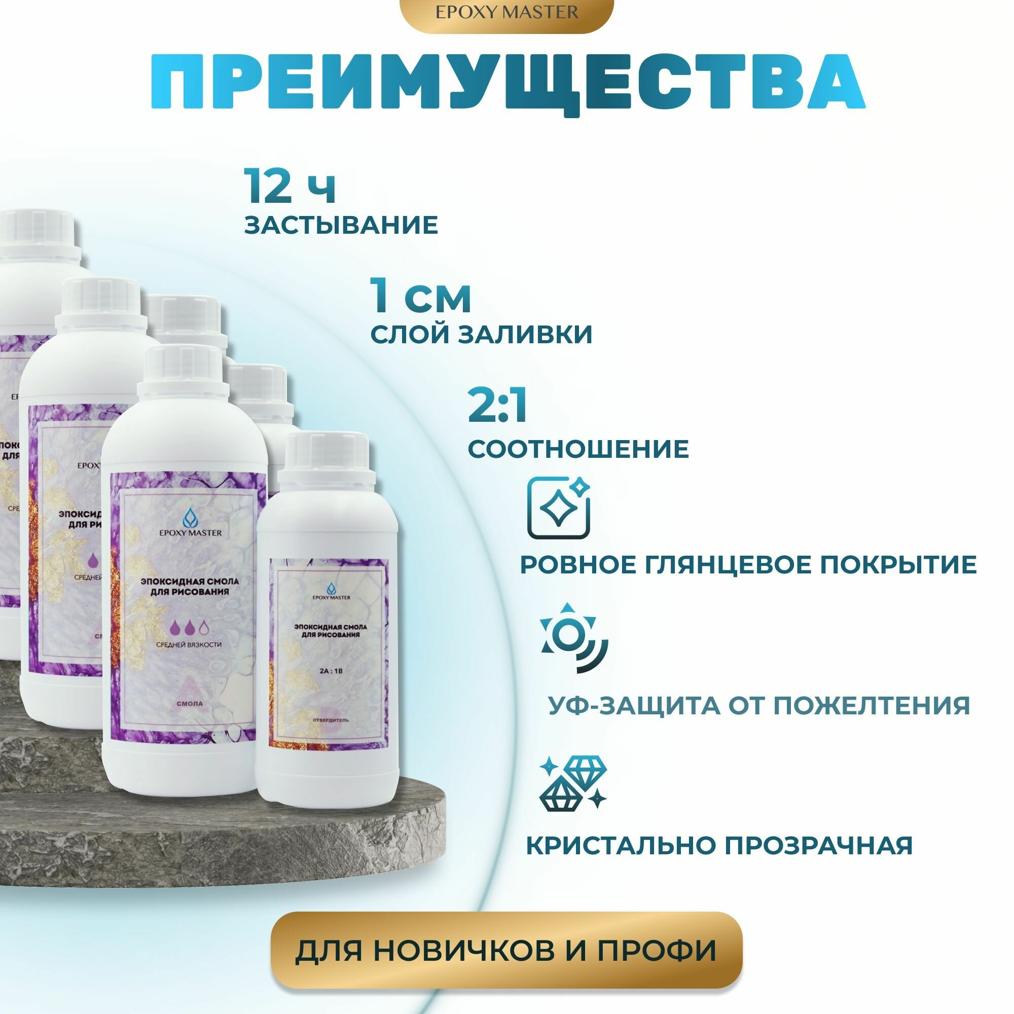 Прозрачная эпоксидная смола для рисования EpoxyMaster (средняя вязкость), 4500 грамм интересное: