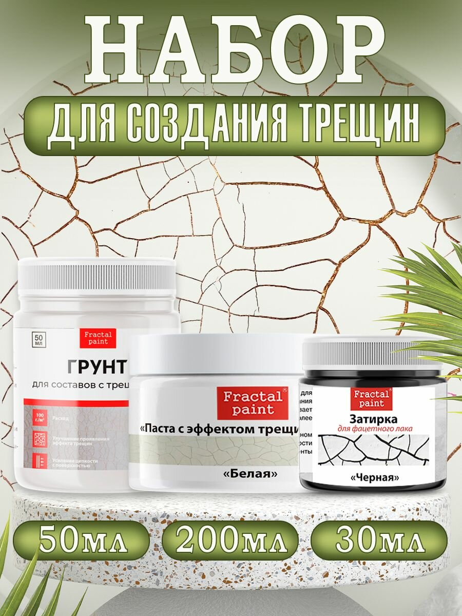 Купить Комбо для создания трещин (белая паста 200 мл + грунт 50 мл + затирка "Чёрная" 30 мл)