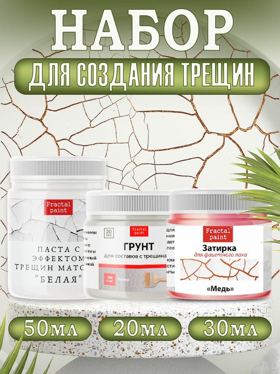 Комбо для создания трещин (белая паста 200 мл + грунт 50 мл + затирка "Медь" 30 мл)
