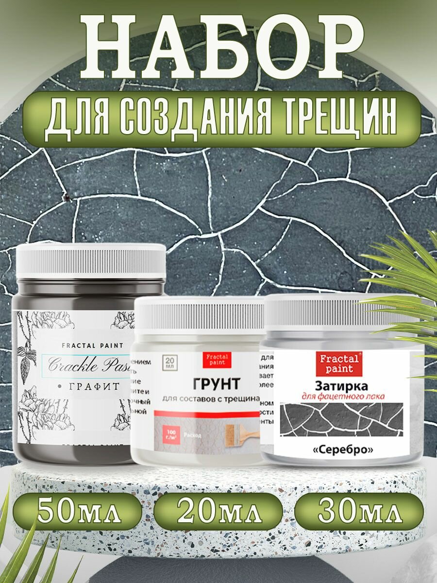 Комбо для создания трещин (графит 200 мл + грунт 50 мл + затирка "Серебро" 30 мл)