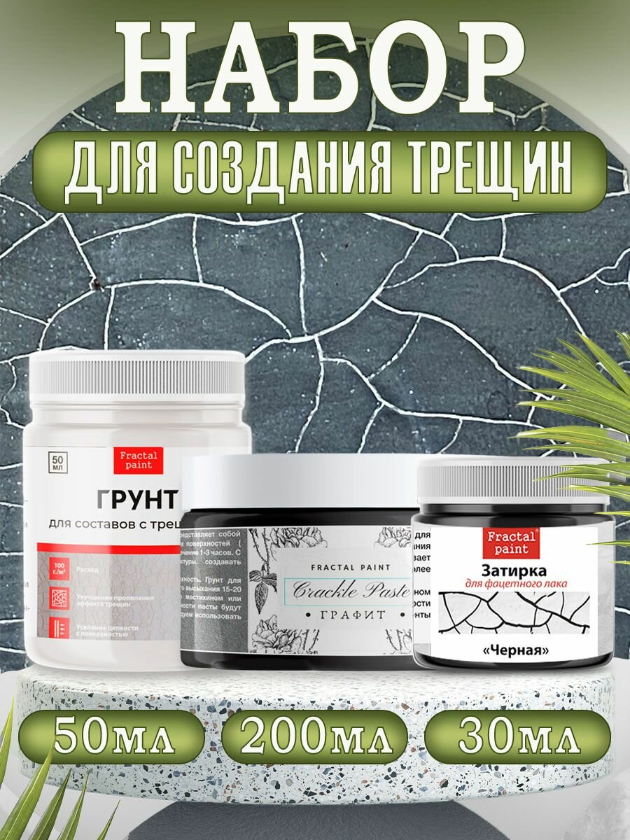 Купить Паста текстурная Fractal Paint / Комбо для создания трещин (графит 200 мл + грунт 50 мл + затирка "Чёрная" 30 мл)