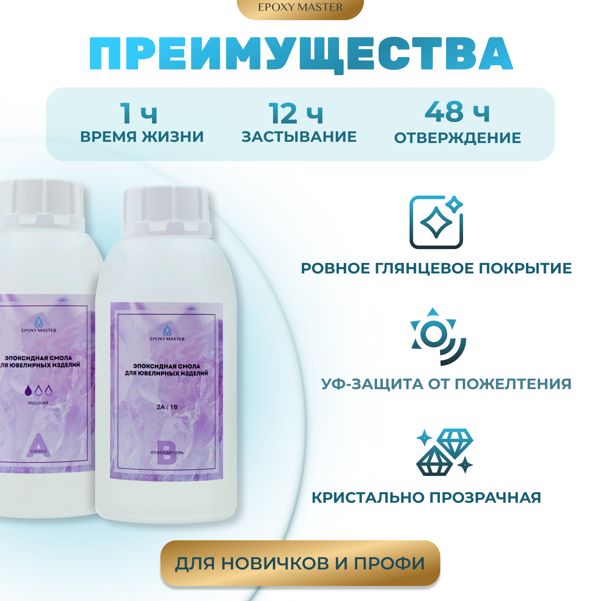 Ювелирная эпоксидная смола EPOXYMASTER, для декора, 750мл, бесцветная интересное: