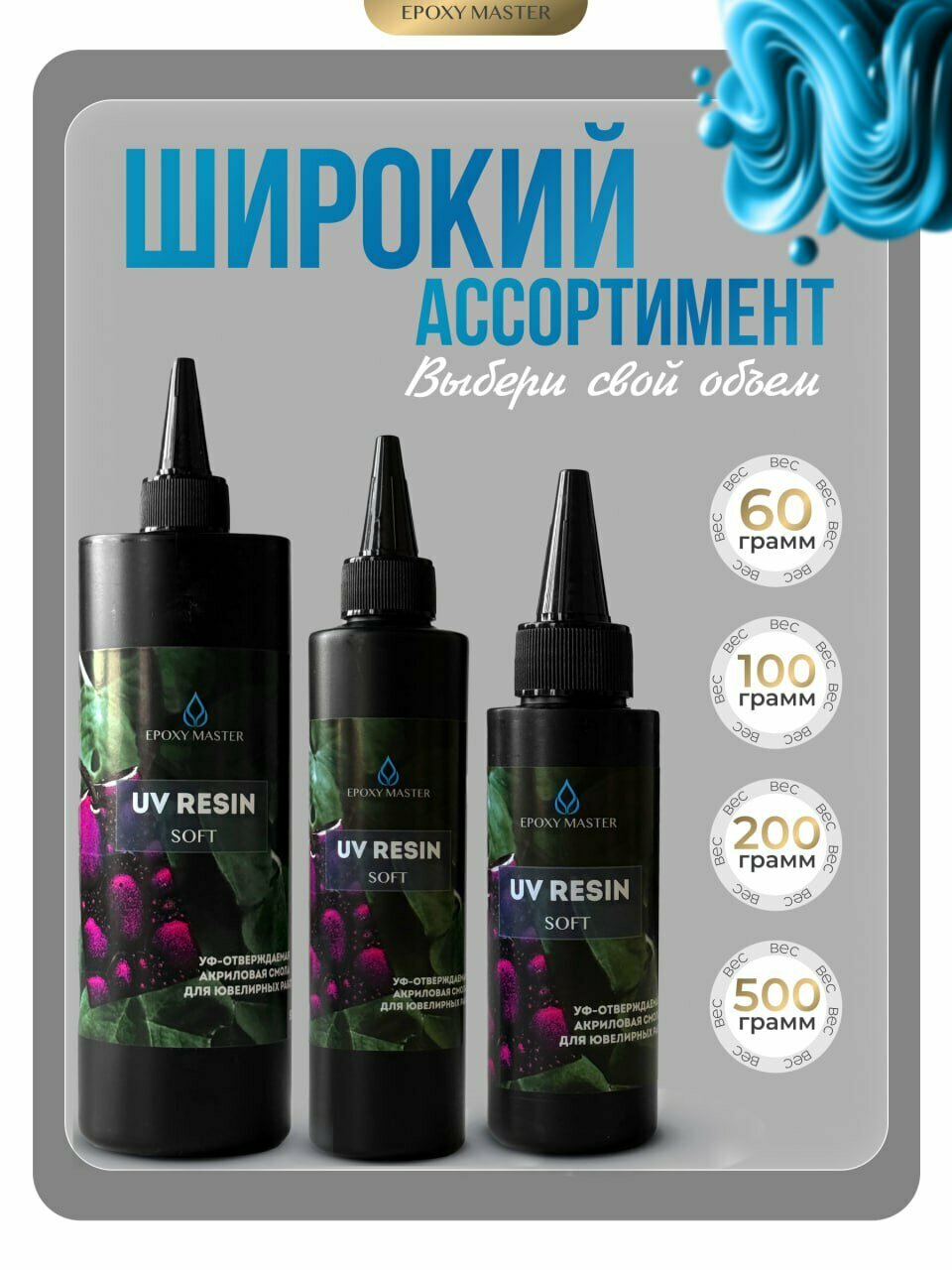 УФ-отверждаемая акриловая смола мягкая Epoxymaster - Soft, 500г