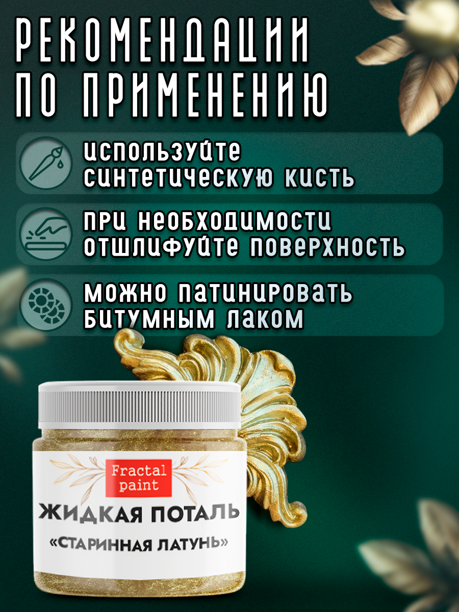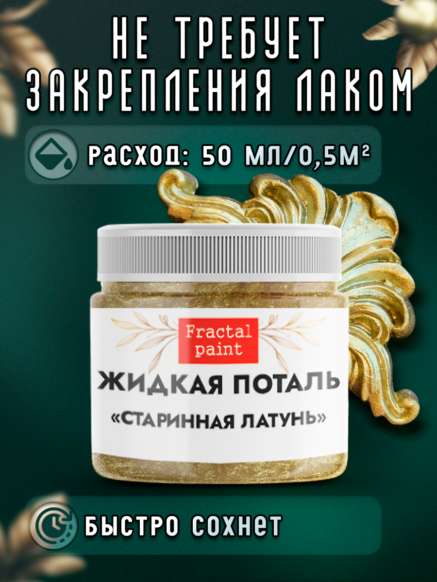 Жидкая поталь "Старинная латунь" (50 мл), Fractal Paint, для имитации металлического эффекта