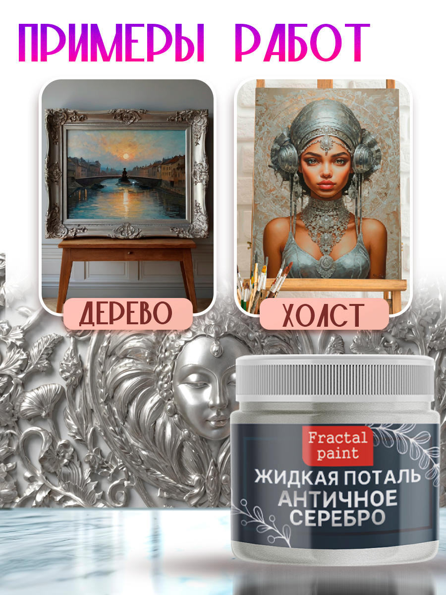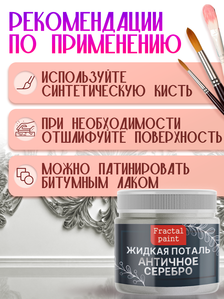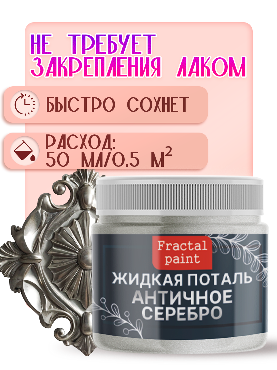 Жидкая поталь "Античное Серебро" (50 мл), Fractal Paint, для имитации металлического эффекта