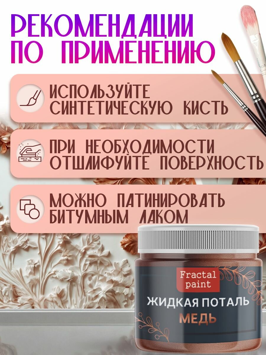 Жидкая поталь "Медь" (50 мл), Fractal Paint, для имитации металлического эффекта