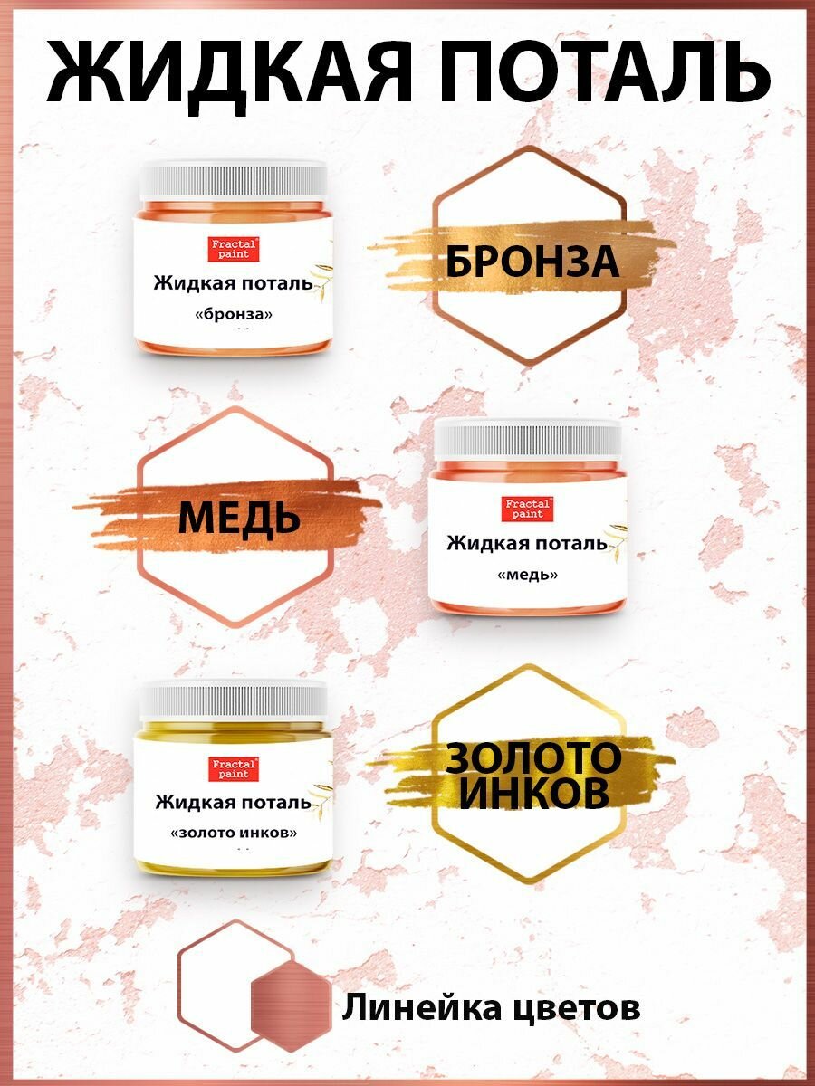 Жидкая поталь "Медь" (50 мл), Fractal Paint, для имитации металлического эффекта