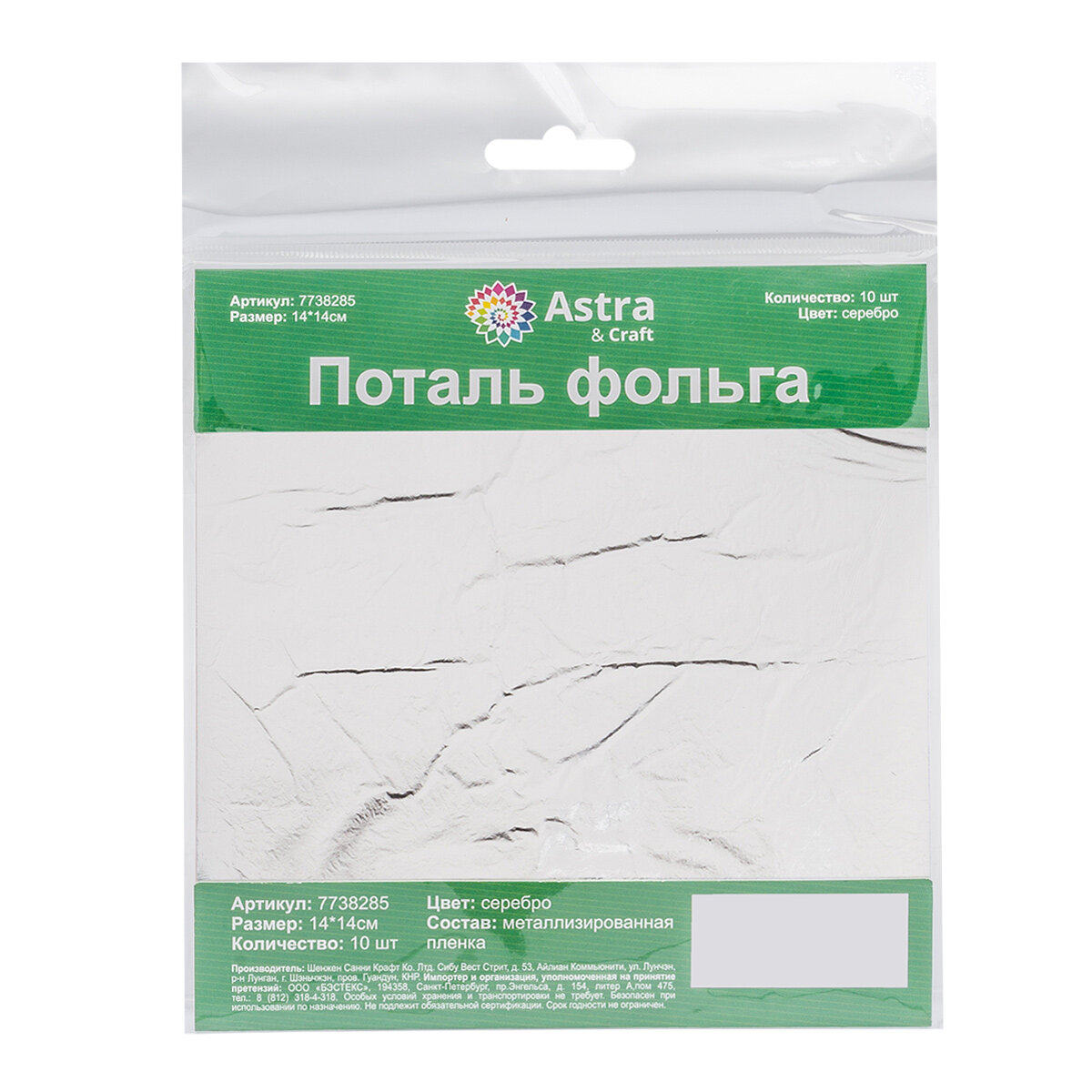 Купить Поталь серебристая фольга для декупажа и декорирования 14*14 см, 10 листов, Astra&Craft