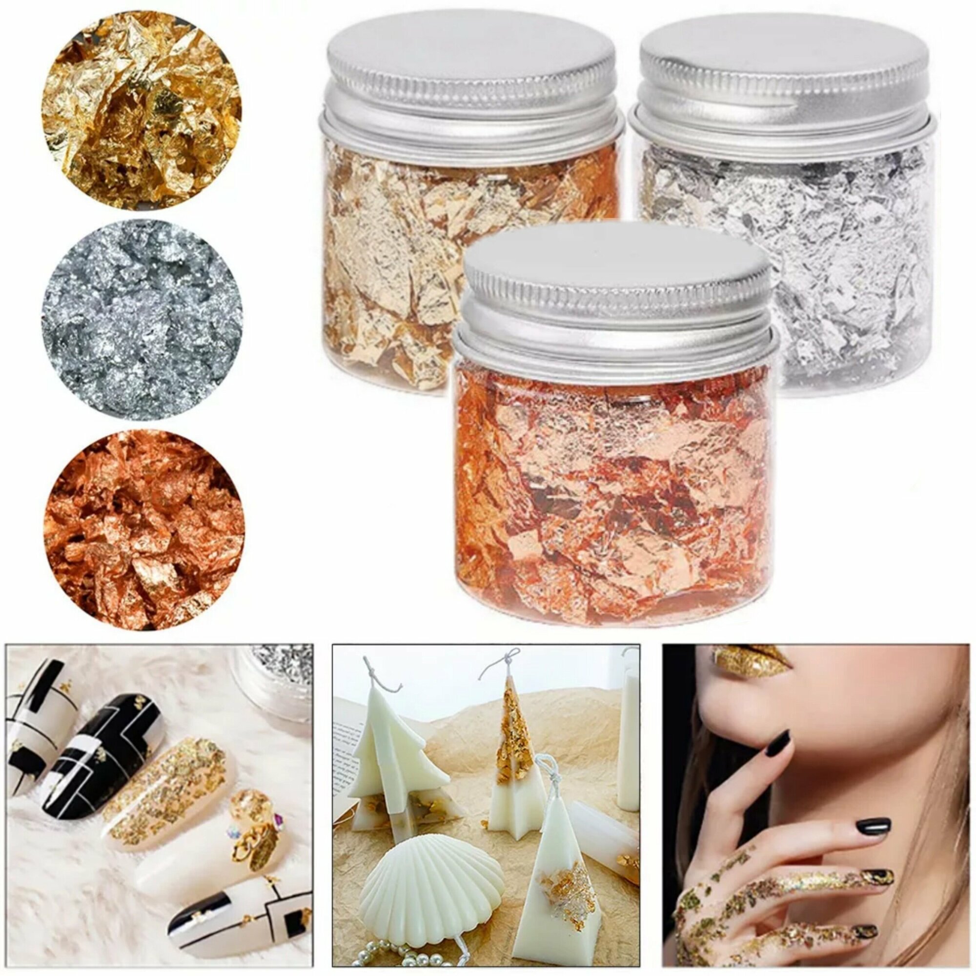Купить Поталь для ногтей в хлопьях, набор из 3 штук