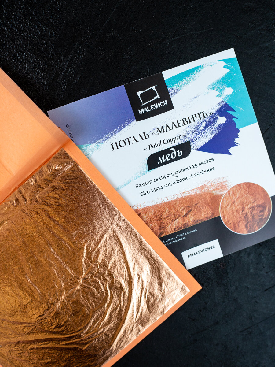 Поталь Малевичъ в листах, книжка, 25 листов, 14х14 см, цвет: медь интересное: