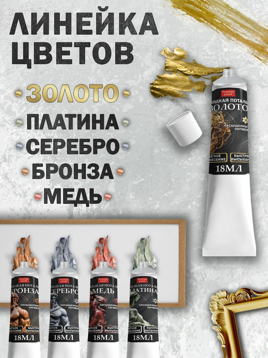 Жидкая поталь Fractal Paint "Золото" в тюбике (18 мл) для творчества интересное: