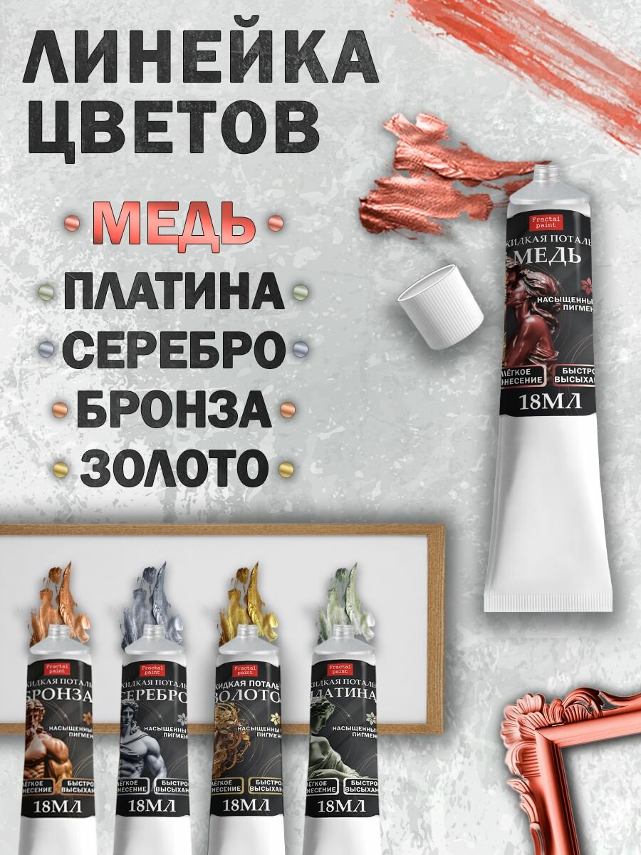Жидкая поталь Fractal Paint "Медь" в тюбике (18 мл) для творчества интересное: