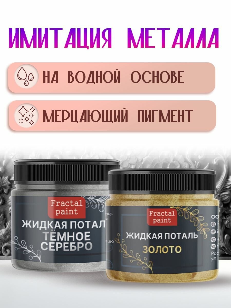Набор жидкой потали Fractal Paint (золото, темное серебро) 30 мл интересное: