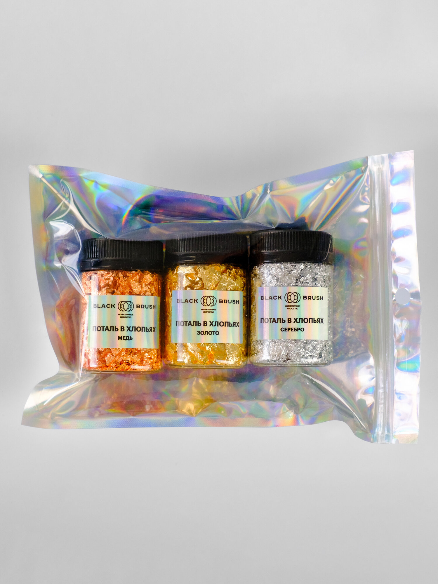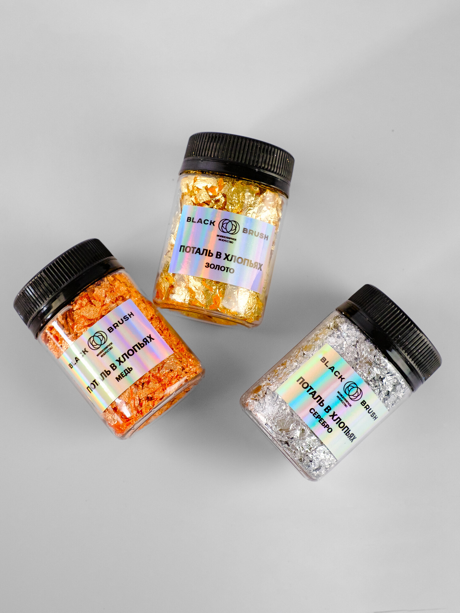 Купить Поталь BLACK BRUSH, для творчества, маникюра, эпоксидной смолы, 3 цвета