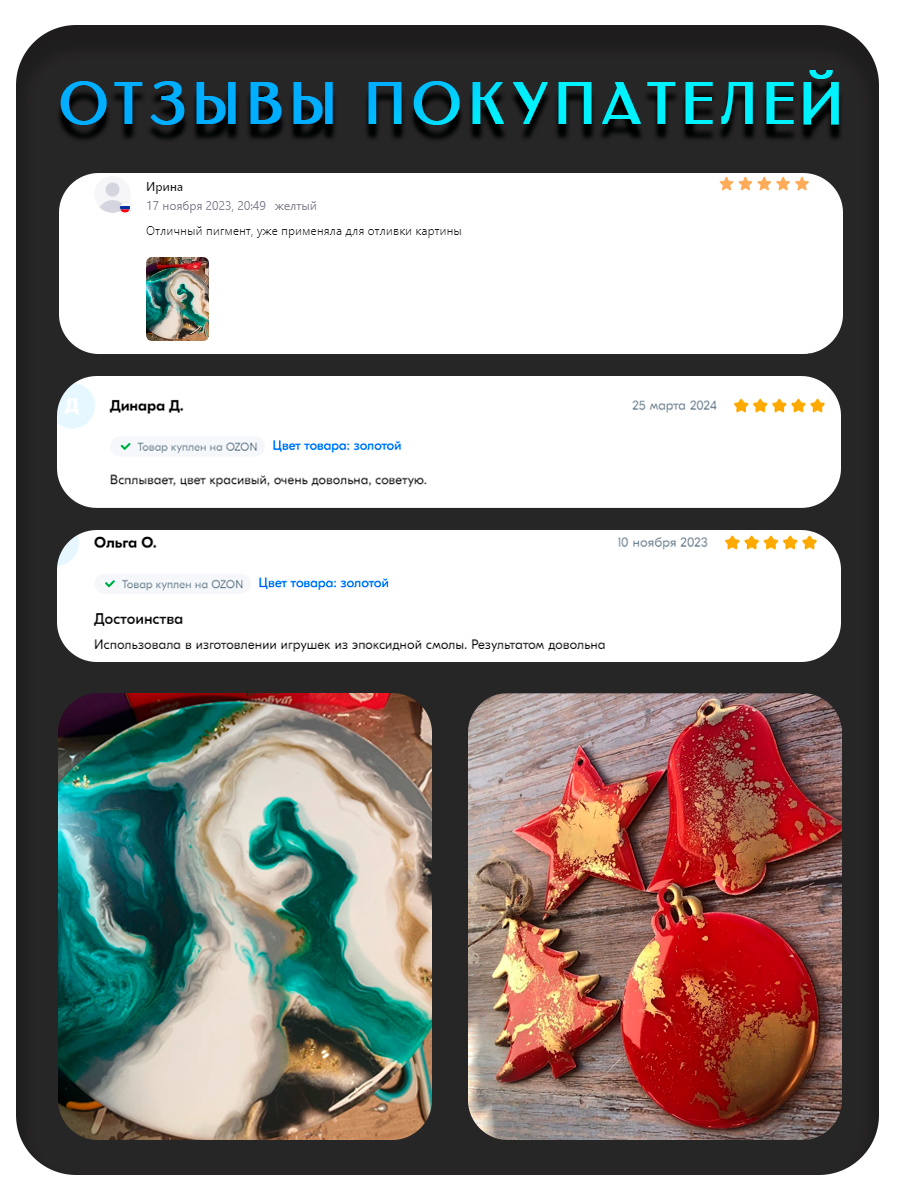 Ниже Вы можете прочитать отзывы на Набор всплывающих пигментов (золото+серебро) 2x20мл, Fractal Paint, ознакомится с подробными характеристиками, посмотреть интересные обзоры и фотографии на Набор всплывающих пигментов (золото+серебро) 2x20мл, Fractal Paint.